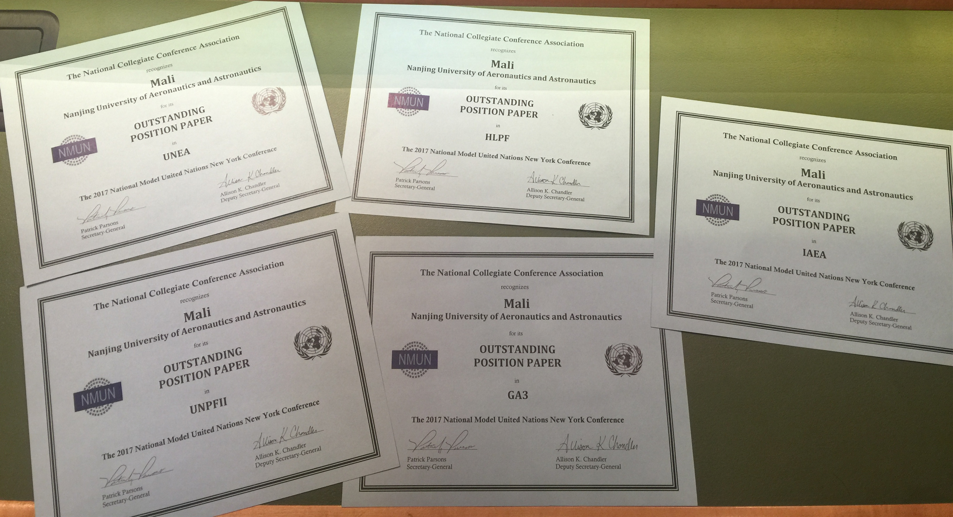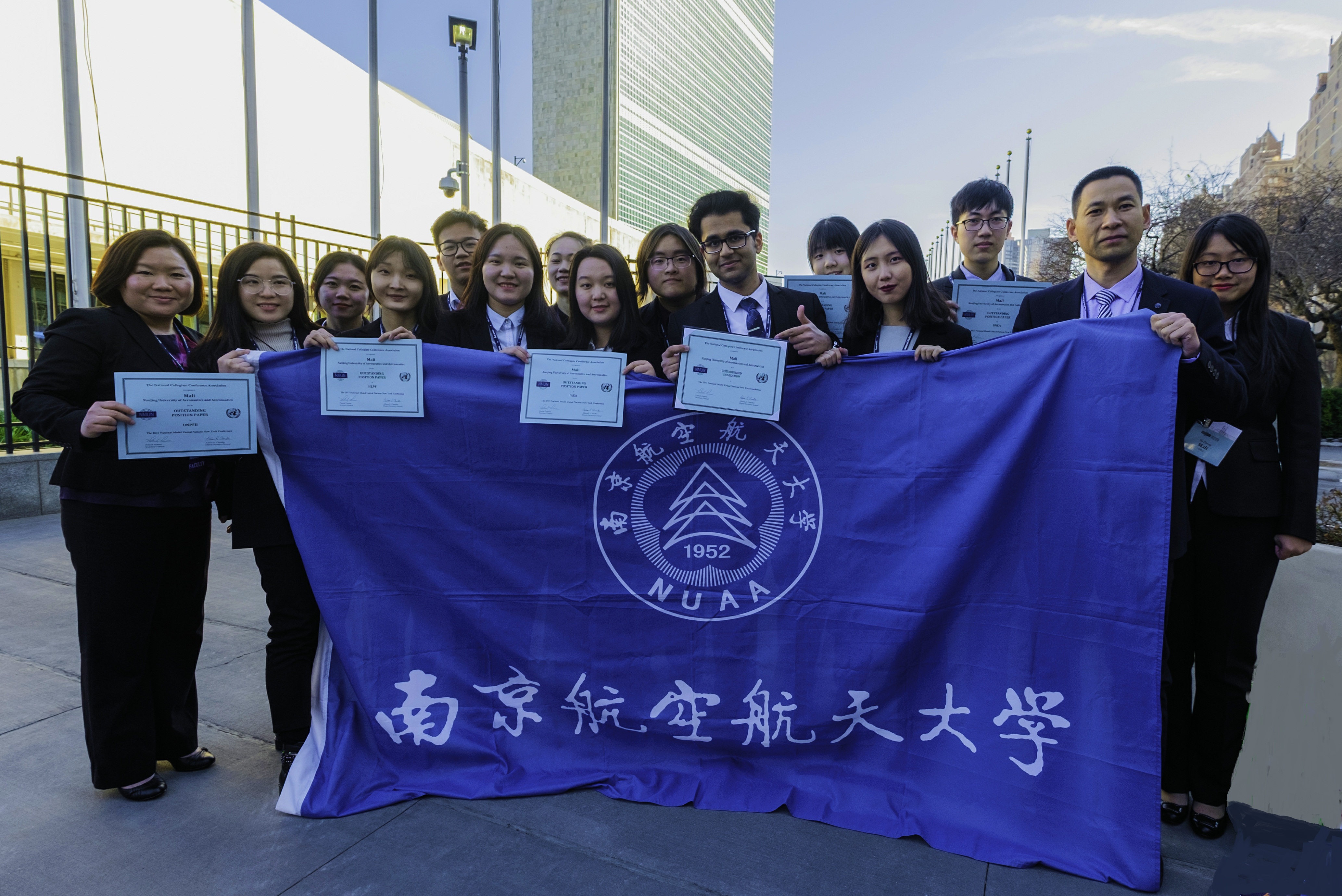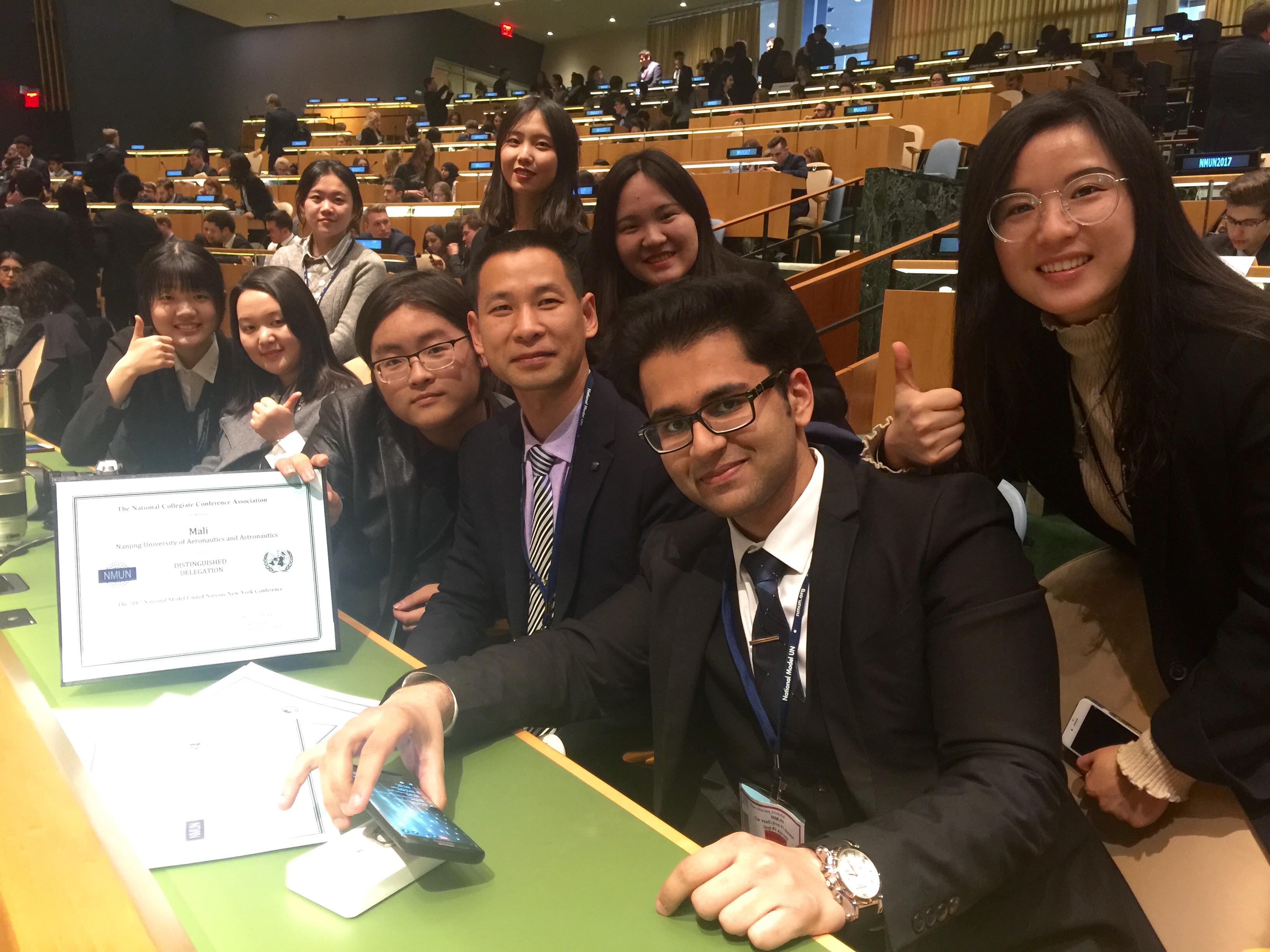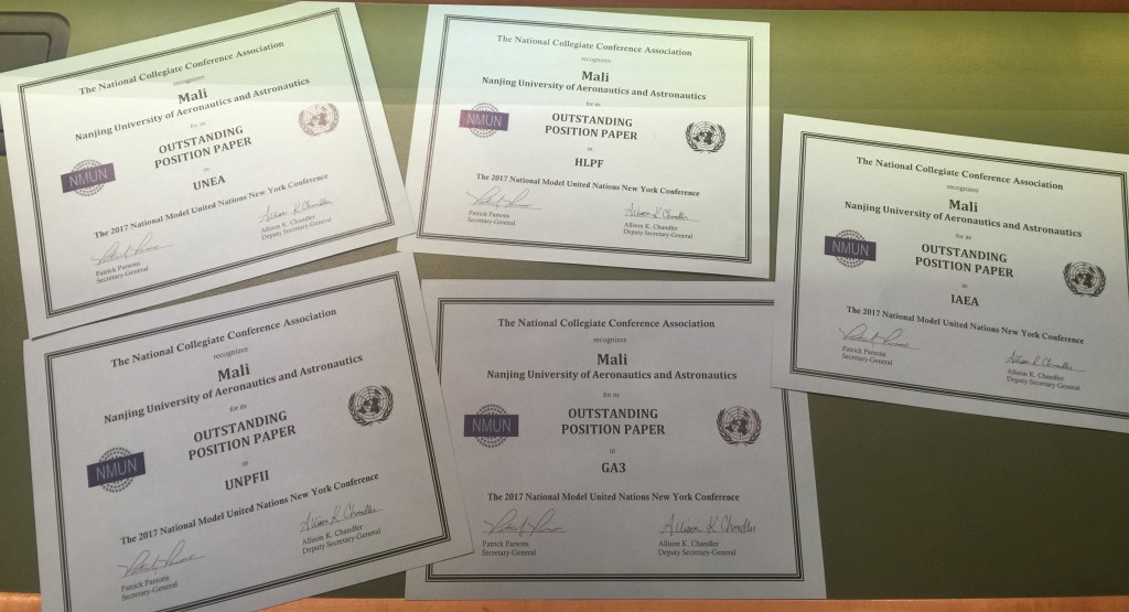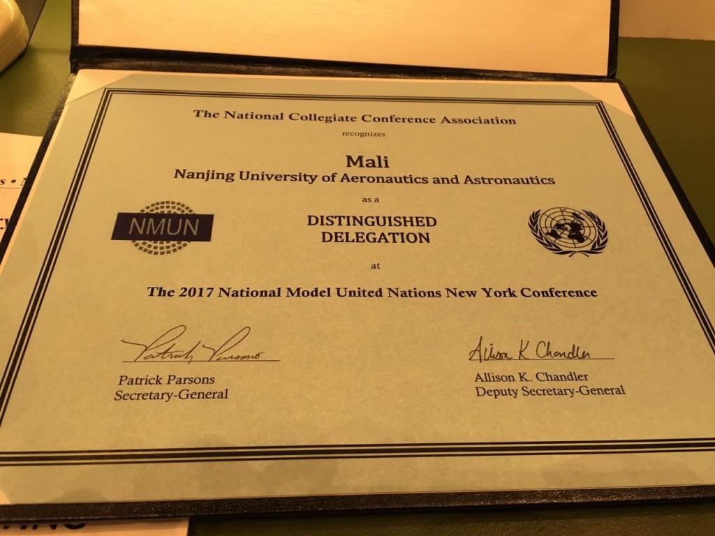 2017纽约全美模拟联合国大会(2017NMUN)于3月19日至25日在纽约如期举行,点点官网代表团凭借出色的参会表现再次荣获大会“优秀代表团”(Distinguished Delegation)团体二等奖,并获得5项“最佳立场文件”(Outstanding Position Paper)个人奖,在去年首次参会获奖的基础上再次突破,也成为此次参会中获奖最多的国内高校。