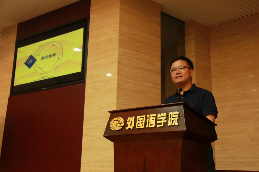 往届优秀学长学姐的祝福视频拉开了新生典礼的序幕。院长范祥涛代表学院全体师生对各位新同学的到来表示最热烈的欢迎和最亲切的问候,给新生们介绍了南航和学院的基本情况,表达了对新生的殷切期望和美好祝福,祝愿新生度过充实有趣的大学生活,夯实语言基础,尽快转换角色,全面发展。