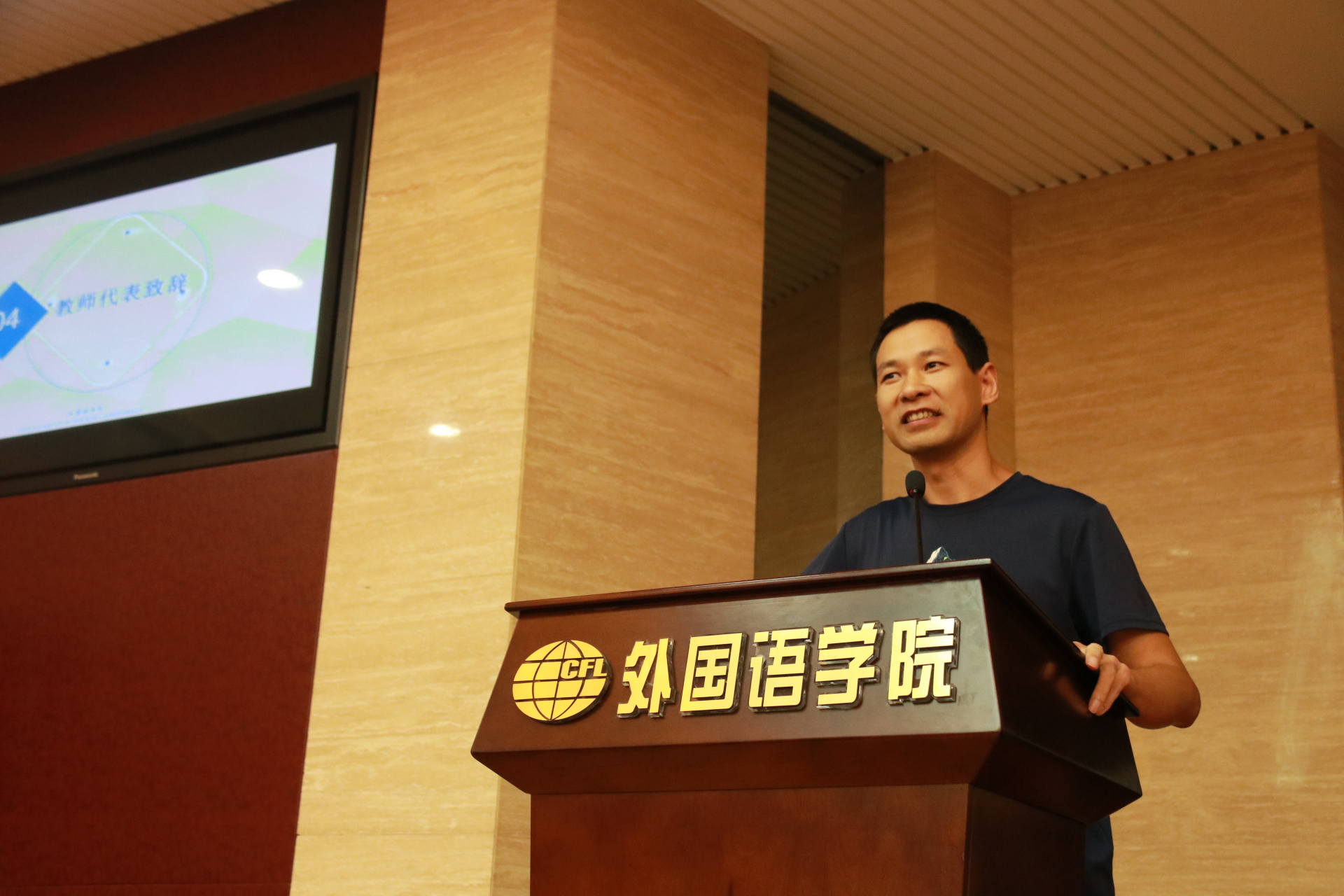 两名新生代表发言也阐述了自己对大学生活的展望,展示了他们的信心和决心。现场还举行了佩戴校徽仪式,院党委书记刘健荣向新生代表们佩戴了校徽,代表着新生正式成为“南航外院人”,迎接新的起点,开启新的希望,承载新的梦想。