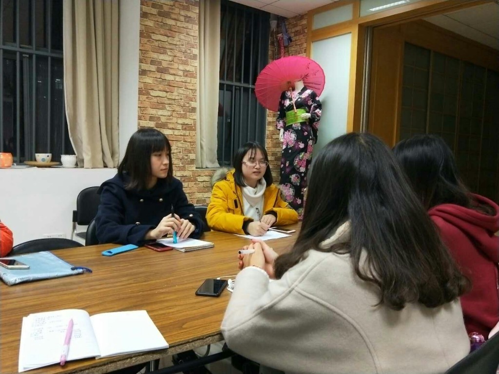 12月14日晚,日语专业举办了研究生“学习经验交流会”。邀请南航2017年度“学术之星”宋杰同学、优秀同学代表颜页和顾红娟同学,向大家分享学习经验和心得。