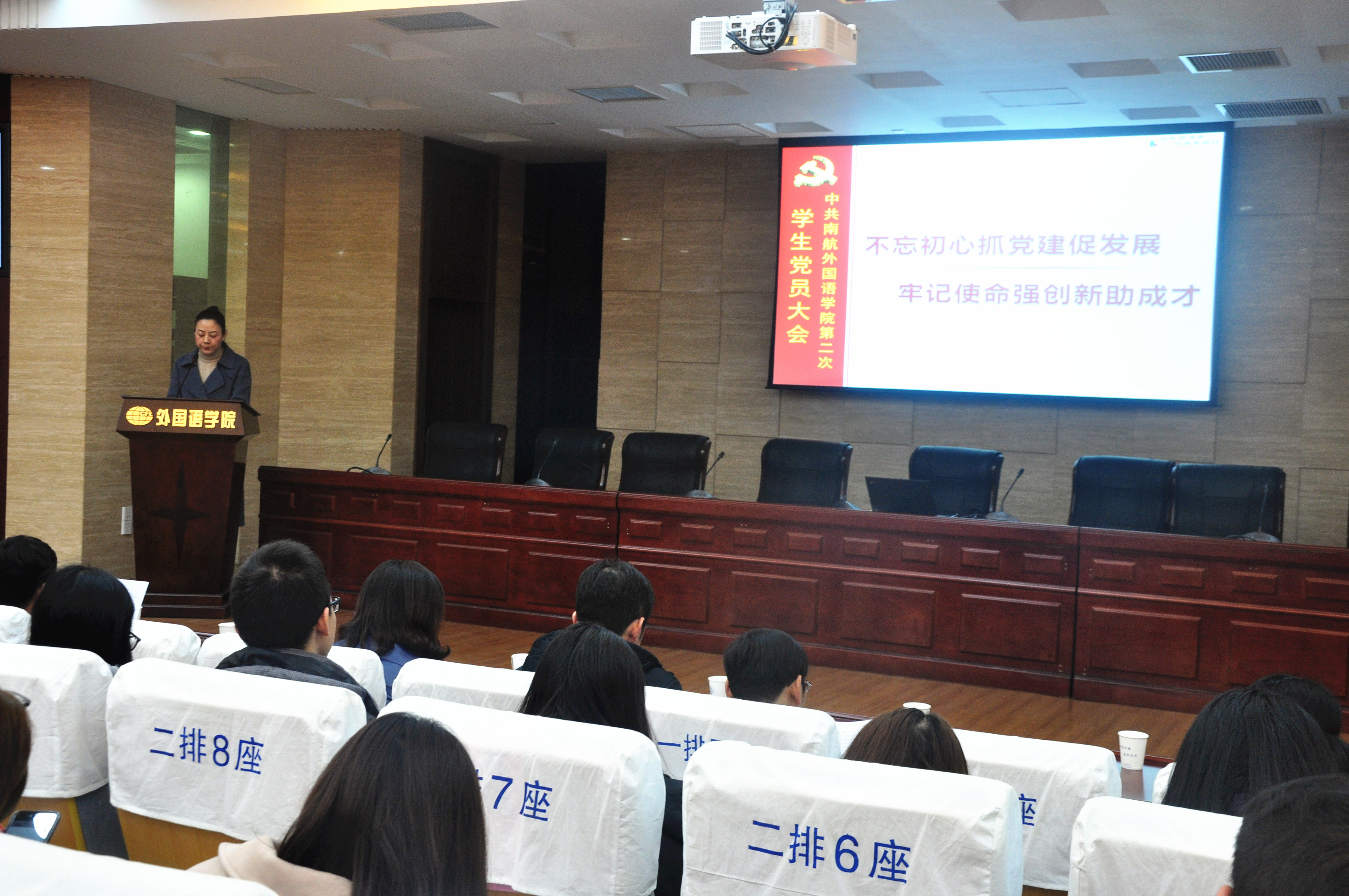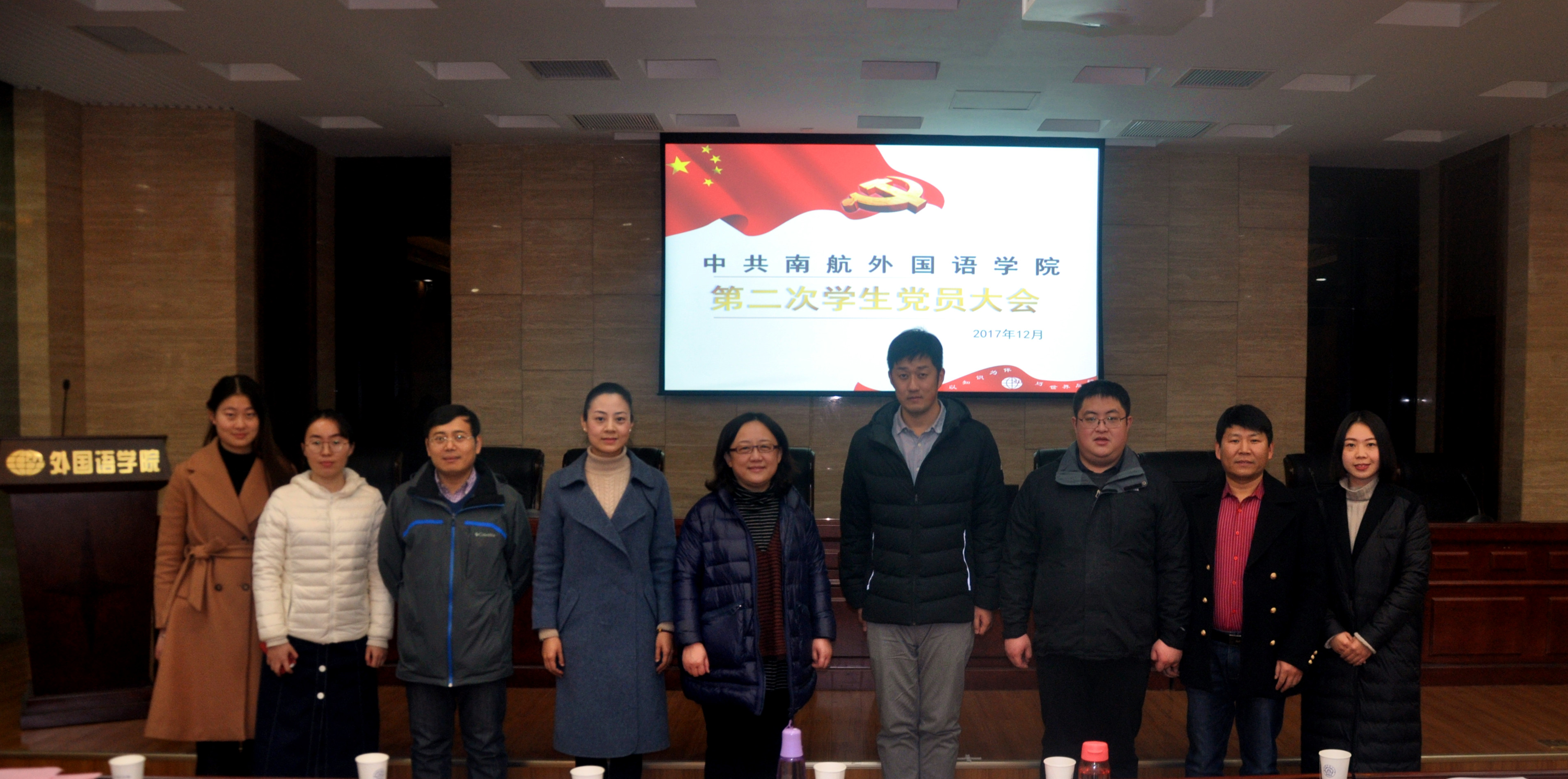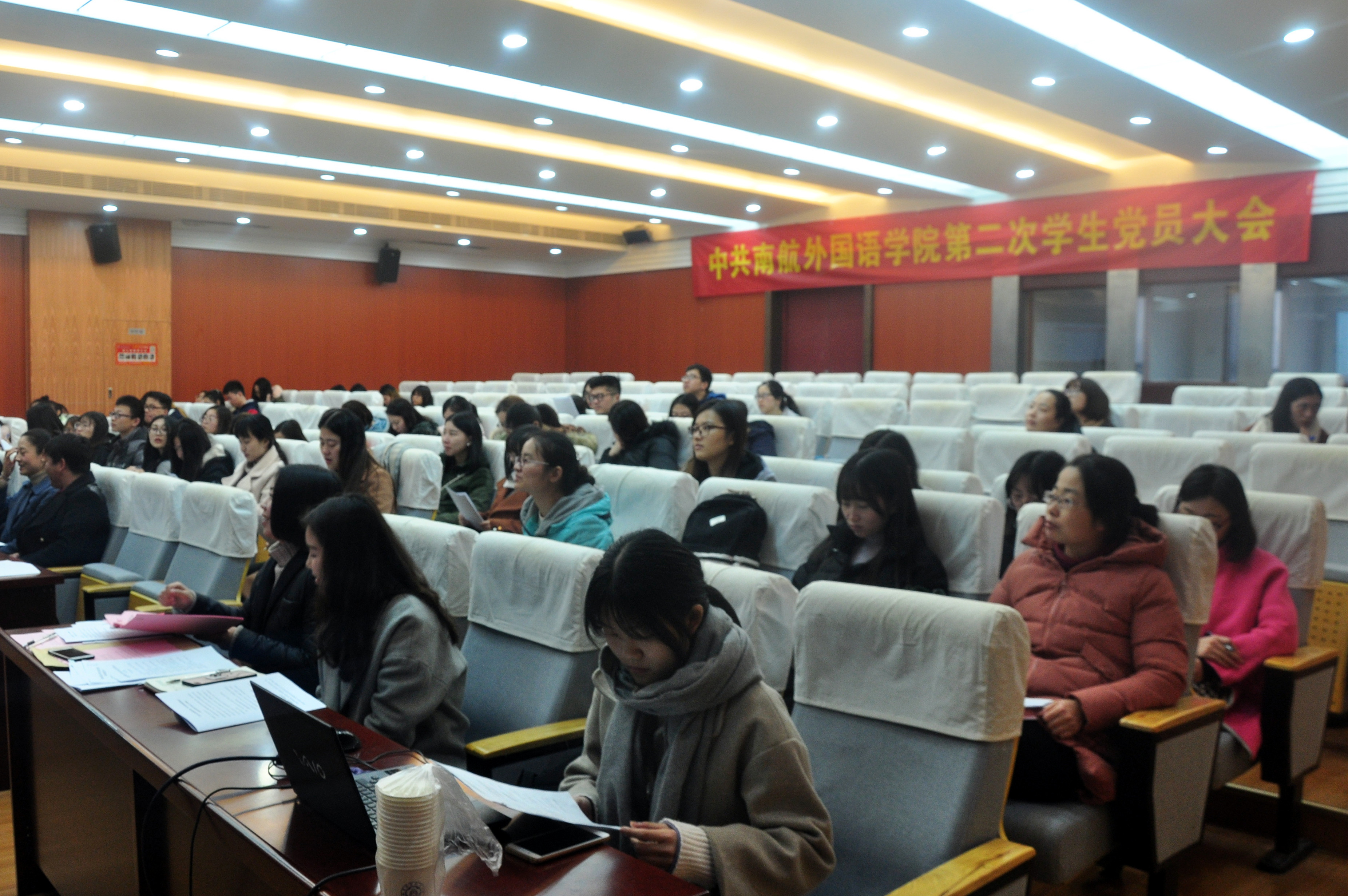 2017年12月22日中午,我院学生党总支第二次党员大会在将军路校区召开。校党委组织部正科级组织员王宁,院党委书记刘健荣、党委副书记梁薇,英语系、日语系负责人,各年级辅导员和全体学生党员参加了会议。大会由院团委书记杨一主持。