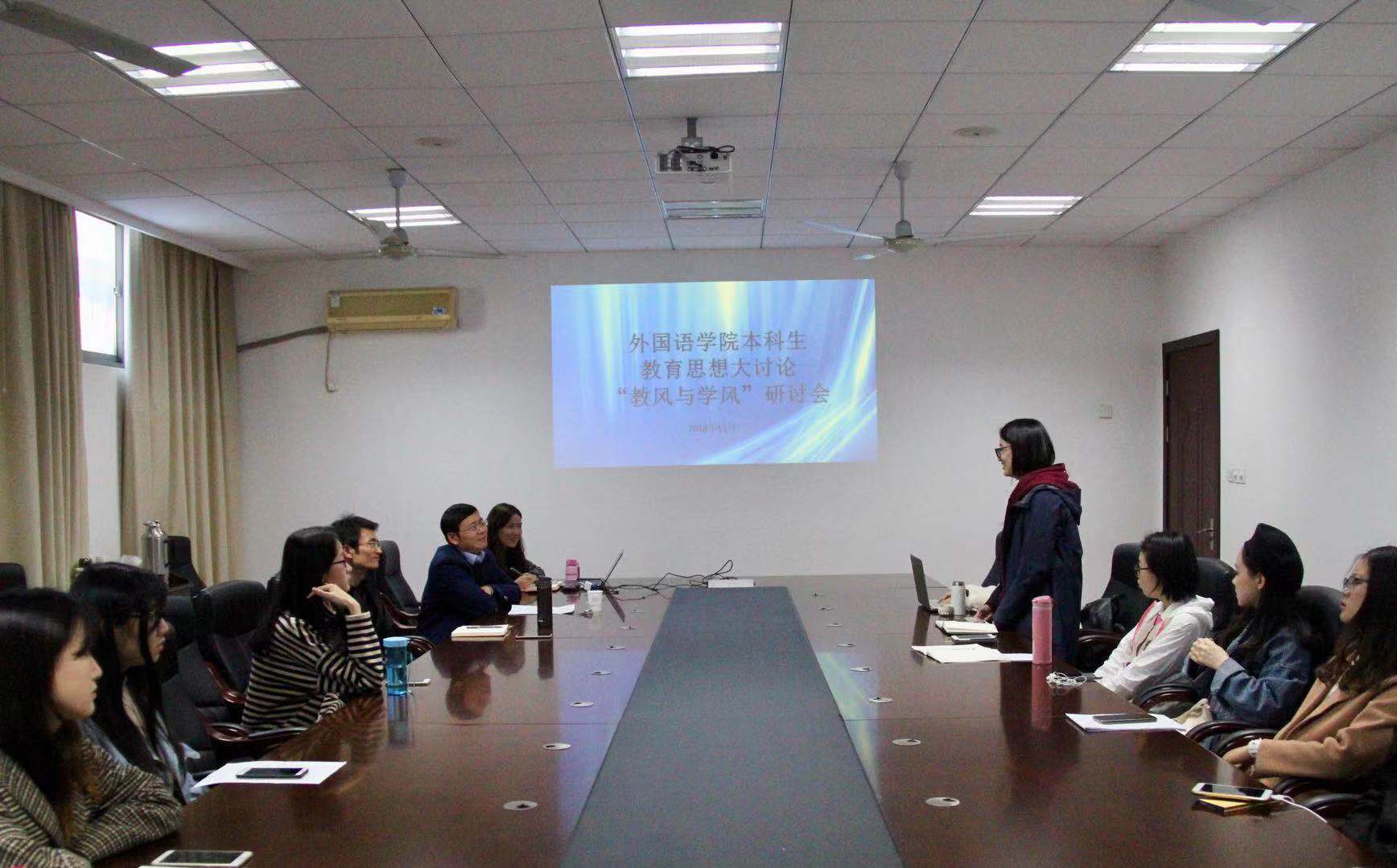 11月9日下午,taptap点点官方网站本科生各年级开展了2场教风与学风专题研讨会,英语系主任姜礼福老师、白雪花老师,日语系钟勇老师,各年级辅导员,各班班长、学习委员及学生代表参加了本次研讨会,就如何更好助力我院学风教风建设发展进行了深入的交流和讨论。