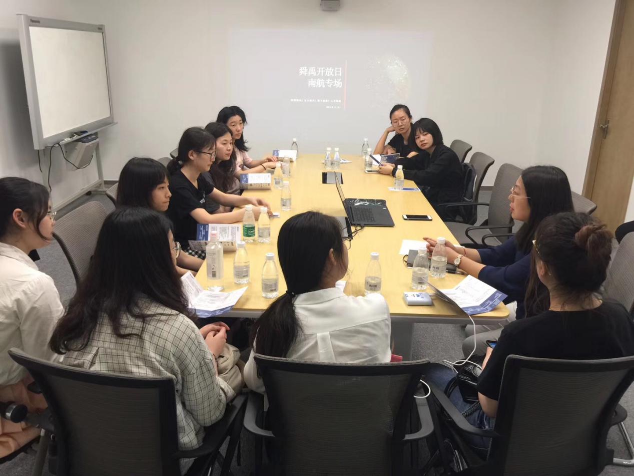 本次走访实践的特别嘉宾为我院2010届英语(民航方向)和2016届日语专业的毕业生,作为目前在舜禹任职的优秀院友,她们就职业发展经历和行业从业感受进行了分享。活动最后,舜禹集团总经理单杰也来到了现场,作为南航校友,他肯定了点点官网的优良学风和求学态度,鼓励同学们能多多了解专业对口行业,早做就业准备,同时对同学们加入舜禹表示热烈的欢迎。