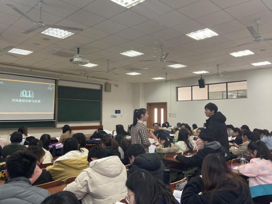 随后,盛嘉贤结合近期的学生管理工作,强调了相关制度和考风考纪问题,特别重申了请假流程的规范性。以放映电影《天才枪手》片段的形式,警示同学们在即将到来的考试月中,认真复习,诚信应考。