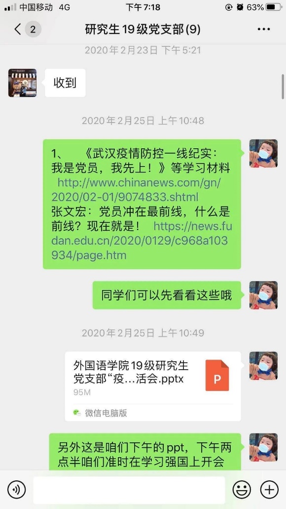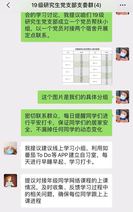 taptap点点官方网站研究生各党支部,充分运用网络新媒体阵地,创新组织生活“线上”模式,在特殊时期在线上开展各研究生党支部党员大会,通过“云端”开展理论学习、党员与群众联系工作,在论文进度、求职签约、毕业答辩、日常打卡等方面开展定点沟通帮扶,充分发挥党支部战斗堡垒作用和党员先锋模范作用。下面就让我们一起去了解他们在疫情期间的行动吧。