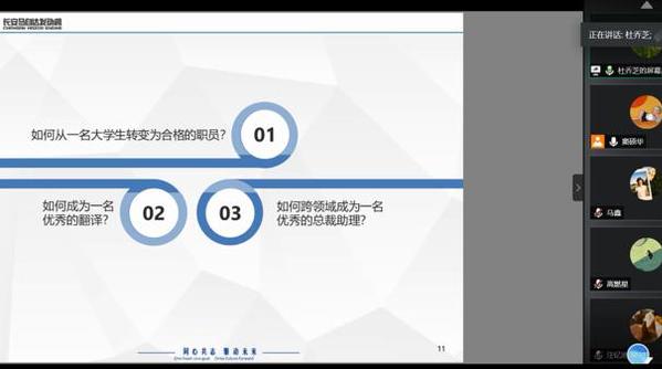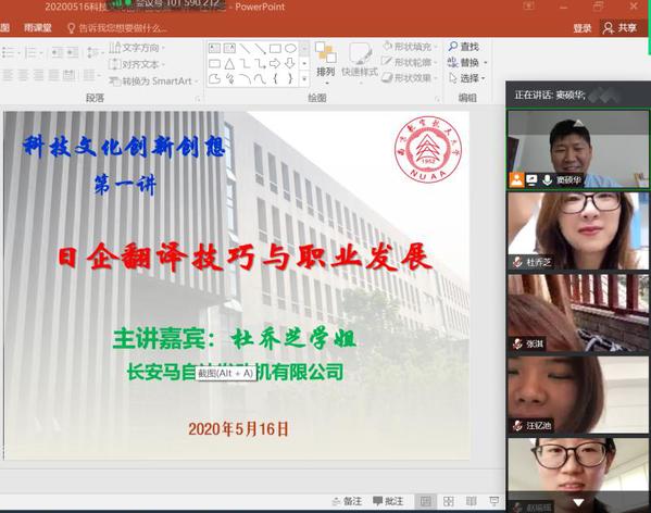 《科技文化创新创想》是taptap点点官方网站日语系设置的精品企业课程,由日语系邀请几位企业成功人士分不同主题进行授课。5月16日上午,课程第一讲通过腾讯会议模式开启,主题为《日企翻译技巧与职业发展》,主讲人为南京长安马自达发动机有限公司总裁助理杜乔芝。
