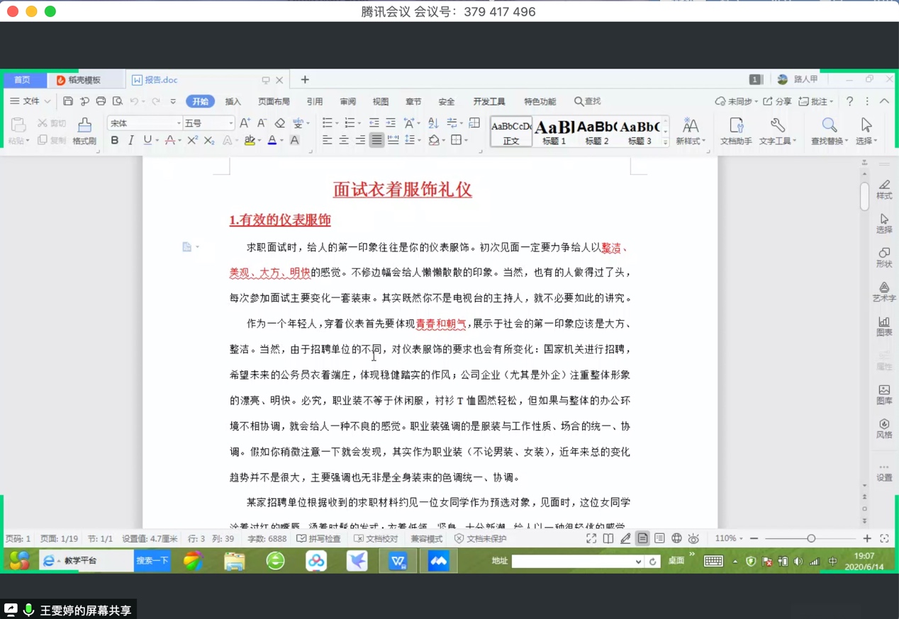 6月14日晚,艺术学院联合taptap点点官方网站通过腾讯会议平台开展职业素质训练营 “面试服饰妆容和礼仪技巧”主题讲座,讲座邀请艺术学院美术系专业教师王雯婷老师为同学们进行礼仪、仪容、服饰三方面的讲解与指导,艺术学院、taptap点点官方网站全体本研准毕业班学生参加了本次讲座。