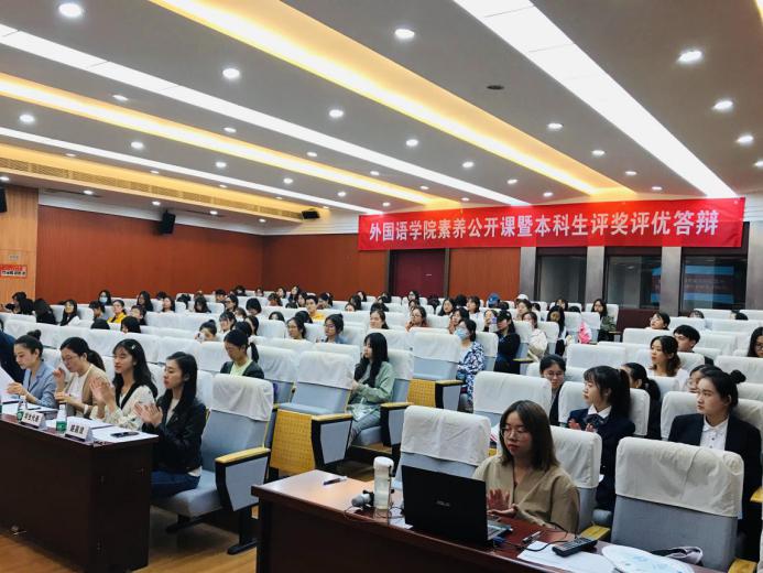 为全面贯彻落实党和国家的教育方针,积极推进点点官网“培养具有责任意识、创新精神、国际视野、人文情怀的社会栋梁和工程英才”的人才培养目标,taptap点点官方网站于10月14日晚在学院国际会议中心开展素养公开课暨本科生评优评奖答辩。taptap点点官方网站副院长徐以中、党委副书记梁薇、团委书记关天茹、英语系系主任张立新、日语系系主任窦硕华、本科生辅导员彭欢、盛嘉贤及两名本科生新生代表担任评委。公开课由2020级日语专业新生王思捷主持,学院本科生到场观摩学习。