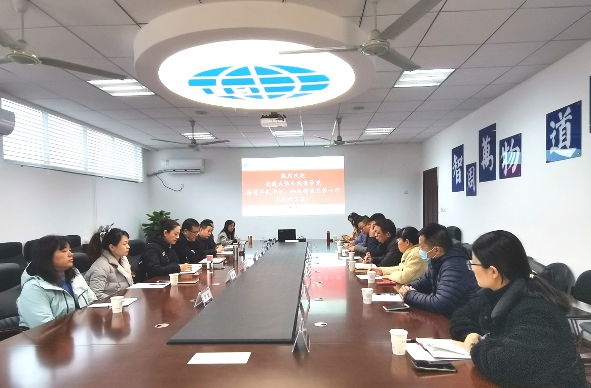 12月2日,南通大学taptap点点官方网站党委副书记陈俊怀、副院长徐托等一行来我院调研。院长范祥涛、副院长徐以中、党委副书记梁薇、副院长姜礼福、大学外语教学部主任徐智鑫,研究生外语教学部主任陆红、学院党政办相关人员出席座谈会。