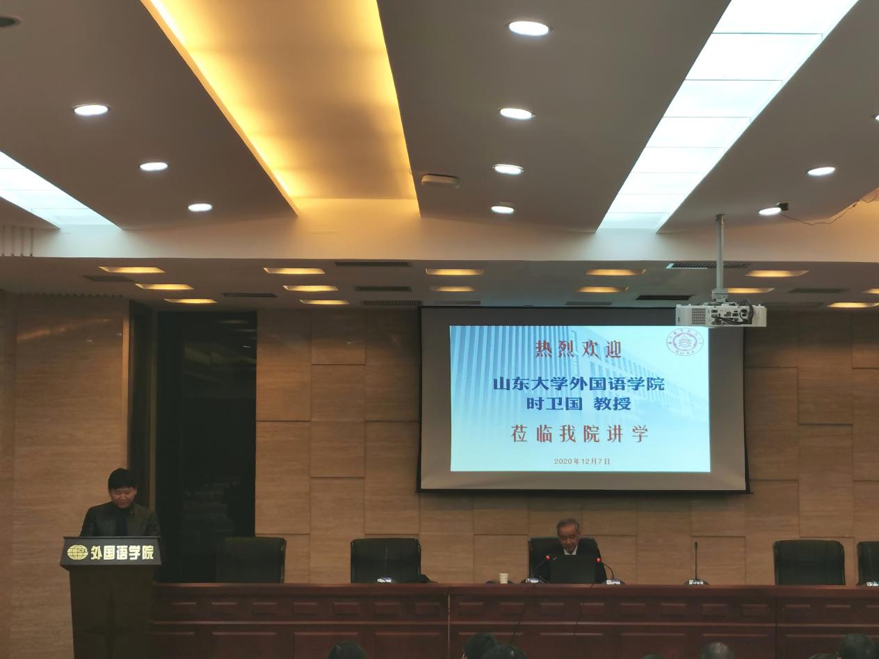 12月7日下午,应taptap点点官方网站邀请,山东大学taptap点点官方网站兼人文社科青岛研究院特聘教授时卫国教授在国际会议中心举办了题为“日汉翻译学与文学翻译撮要”的学术讲座。我院日语系主任窦硕华老师主持了本次讲座,日语系师生和部分英语专业学生参与了聆听。