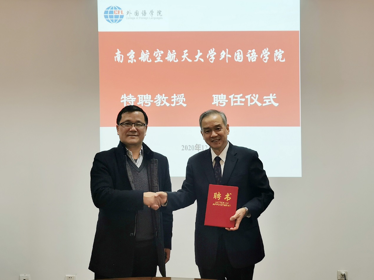 时教授在过去几年间曾三次莅临我院,与日语系教师结下了深情厚谊,时刻关心南航日语专业的发展。经学院协商,决定聘任时卫国老师为我院特聘教授,7日下午讲座前,院长范祥涛教授亲自颁发“特聘教授”聘书。时卫国教授表示,今后将尽自己所能,支持南航日语专业发展的发展,并为南航高水平国际化人才的培养贡献力量。