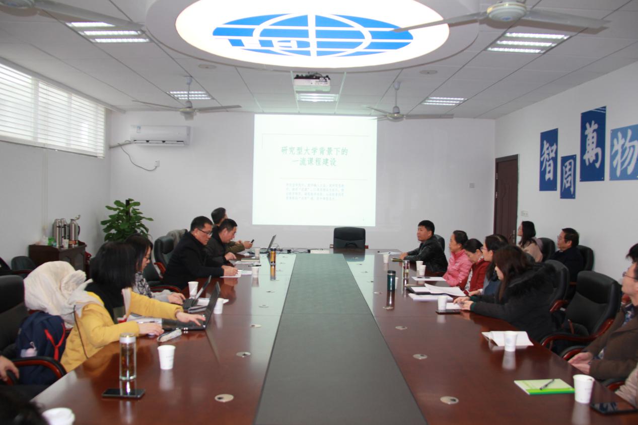 讲座中,朱刚教授探讨了研究型、双一流大学背景下打造研究型教学关系、培养研究型教师队伍、教授研究型课程的重要性。具体而言,在研究型学院中,教师要以课程建设为抓手,带动教学研究,凝练教学成果,从教授专业技能课到专业思想课,再到专业“共享”课,逐渐提升课程层次,提高教学质量。讲座中,与会教师与朱教授积极互动,提出了教学研究过程中遇到的难点和具体问题,朱教授一一做了详细解答。
