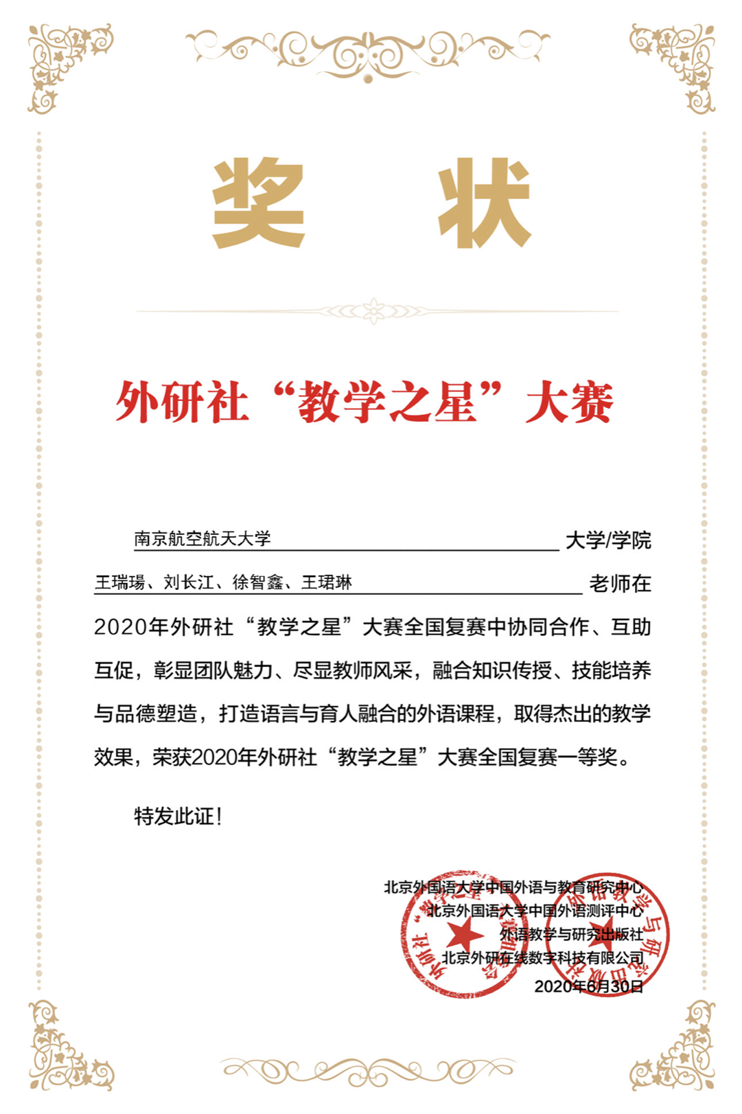教育教学改革实现新发展。学院研讨确定大学英语教育新态势,明确大学英语教育方向,推进教育教学改革。深化教育教学改革,探索线上线下混合教学模式,实行基础系列课程包班上课机制。目前,正在深化“学术英语”,探索“工程英语”。近五年,获批省级以上教改项目3项,江苏高校外语教育“课程思政与混合式教学”专项课题2项。持续课程教材建设。“中国概况(英文)”获批江苏省来华留学生英文授课精品课程、江苏高校外国留学生英文授课省级精品课程,“科技英语翻译”获批江苏省在线开放课程;《China Today》获批中宣部“新中国成立70周年外文图书项目”;江苏省高等学校重点教材《新指南跨文化教育英语》、校十三五教材《研究生英语阅读教程》《新编法国概况》等10部教材出版。