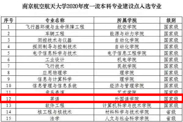 专业学科建设实现新突破。专业建设和学科建设是人才培养、科学研究和社会服务的两大支柱,学院不断深化内涵,特色建设,改革创新。专业学科创一流:学院英语专业2016年获批“江苏省重点专业”,2020年成功申报“国家一流专业”;2020年,筹备外国语言文学一级学科新一轮评估。研究机构强特色:近五年,新建2个研究中心;2017年获批教育部国别和区域研究中心,重点开展巴尔干地区研究;成立“航空英语研究中心”,2017年与无国界航空发展有限公司探索产教融合;2018年为东航构建维修人员英语能力测评体系。实验室建设增实效:近五年,新建成2个实验室;2018年新建国际会议同声传译实验室;2019年建成神经认知语言学实验室。专业会议促交流:每年举办全国或省内的学术、教学会议2场;2020年主办了“全国国别与区域研究云上高端论坛”,并成功举办翻译学、文学、语言认知学三个全国性线上学术会议。