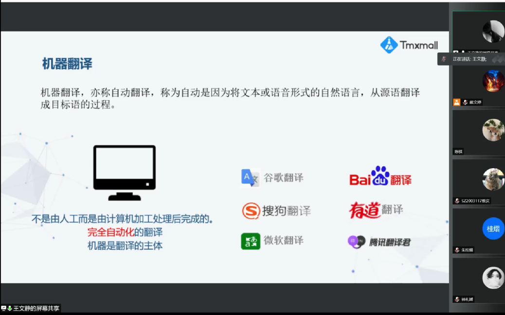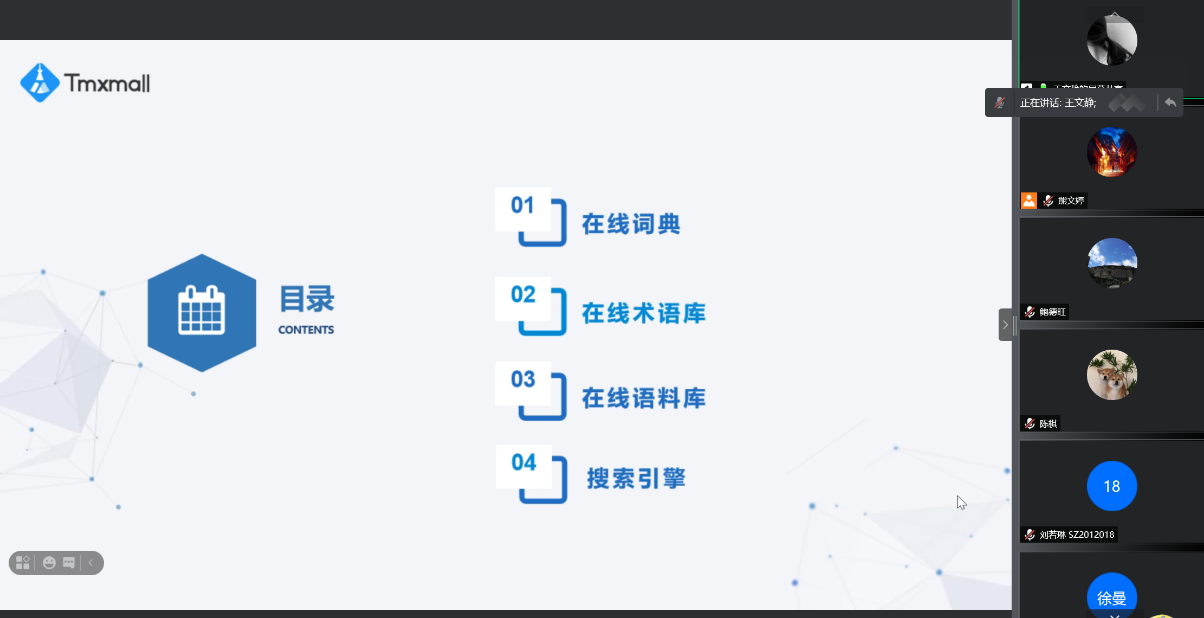 7月8日晚7点,上海一者信息科技有限公司高级运营经理王文静应taptap点点官方网站邀请,为20级MTI研究生带来了一堂精彩的线上讲座。王经理曾参与多个大型特色语料库建设项目,擅长语料库的生产制作及检索分析,并熟悉各类主流计算机辅助翻译工具实践应用,本次她带来的讲座主题为“信息检索与机器翻译译后编辑”。
