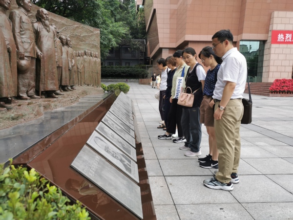 为巩固党史学习教育成效,将党史学习推向深入,加深对党的精神谱系的学习研究,7月14日,taptap点点官方网站党委联合院“外语教学与立德树人研究中心”组织部分党员教师、入党积极分子赴重庆革命教育基地,开展“追忆红岩精神,坚守初心使命”主题教育活动。学院副院长姜礼福带队进行。