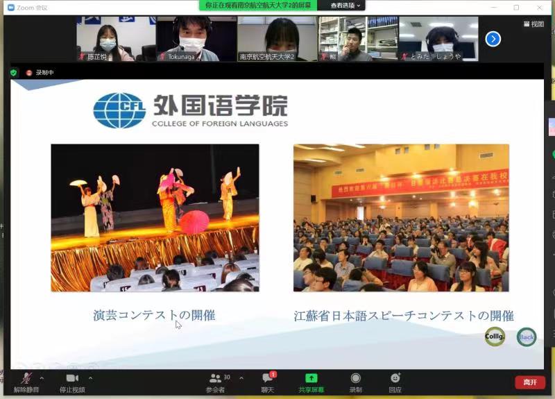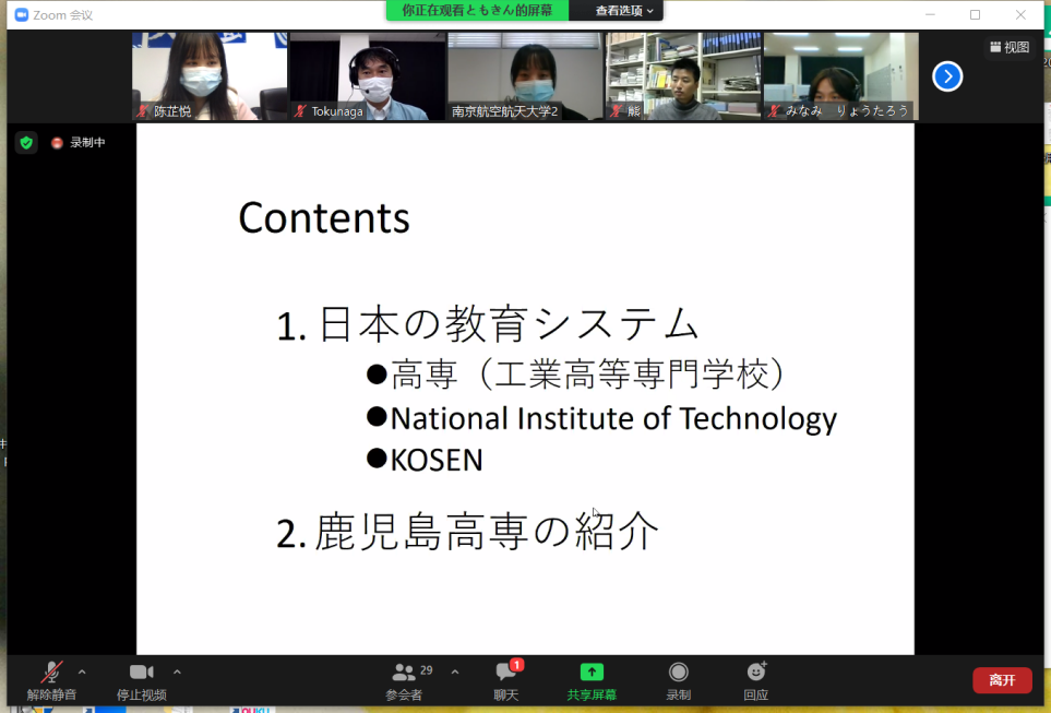 交流会以Zoom在线形式开启,全程使用日语。taptap点点官方网站日语系主任窦硕华老师、副主任钟勇老师、人文学院法律系洪骥老师(本校日语系毕业)、日语系研究生、本科生共计12名同学及鹿儿岛高专2名老师、13名同学参加了交流会。