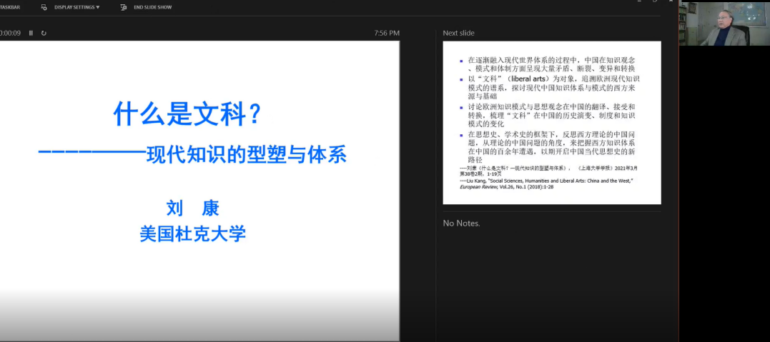 12月18日上午,欧洲科学院外籍院士、美国杜克大学中国研究中心主任刘康教授受邀为南航师生做了题为“什么是文科?——现代知识的形塑与体系”的线上讲座。本讲座由国际合作处和taptap点点官方网站共同组织。taptap点点官方网站327设置线下会场,线上线下同步进行,共有100多位师生参加,讲座由外院副院长姜礼福和学院国际交流中心主任刘世红联合主持。