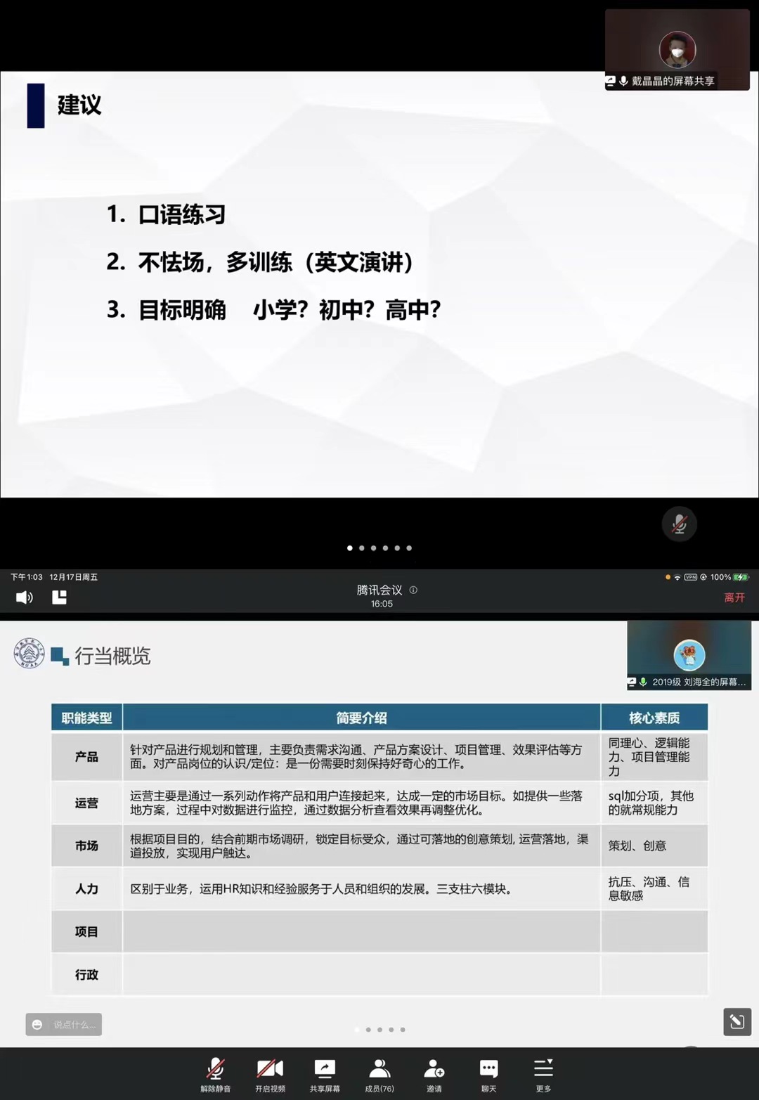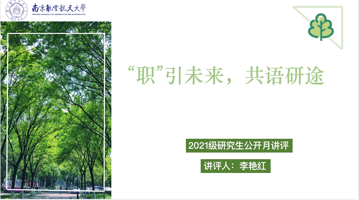 12月17日,taptap点点官方网站面向2021级研究生开展了“职”引未来,共语研途线上公开月讲评,本次月讲评由研究生兼职辅导员李艳红主持召开,2021级全体同学参加,旨在为研一同学职业规划提供建议与指导。