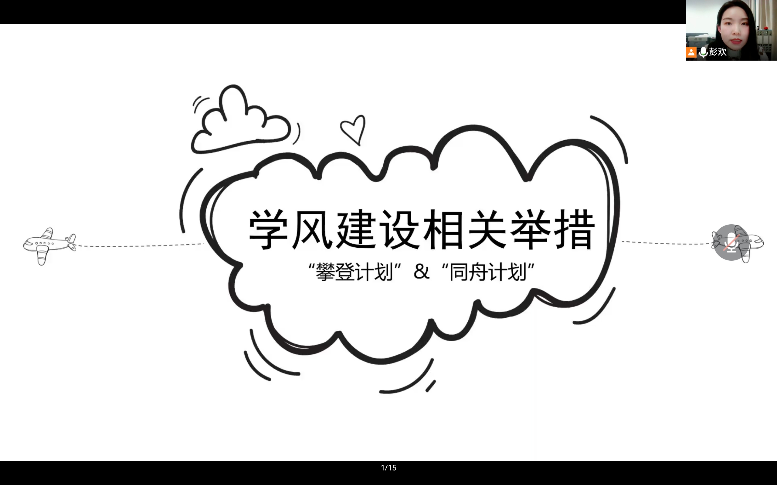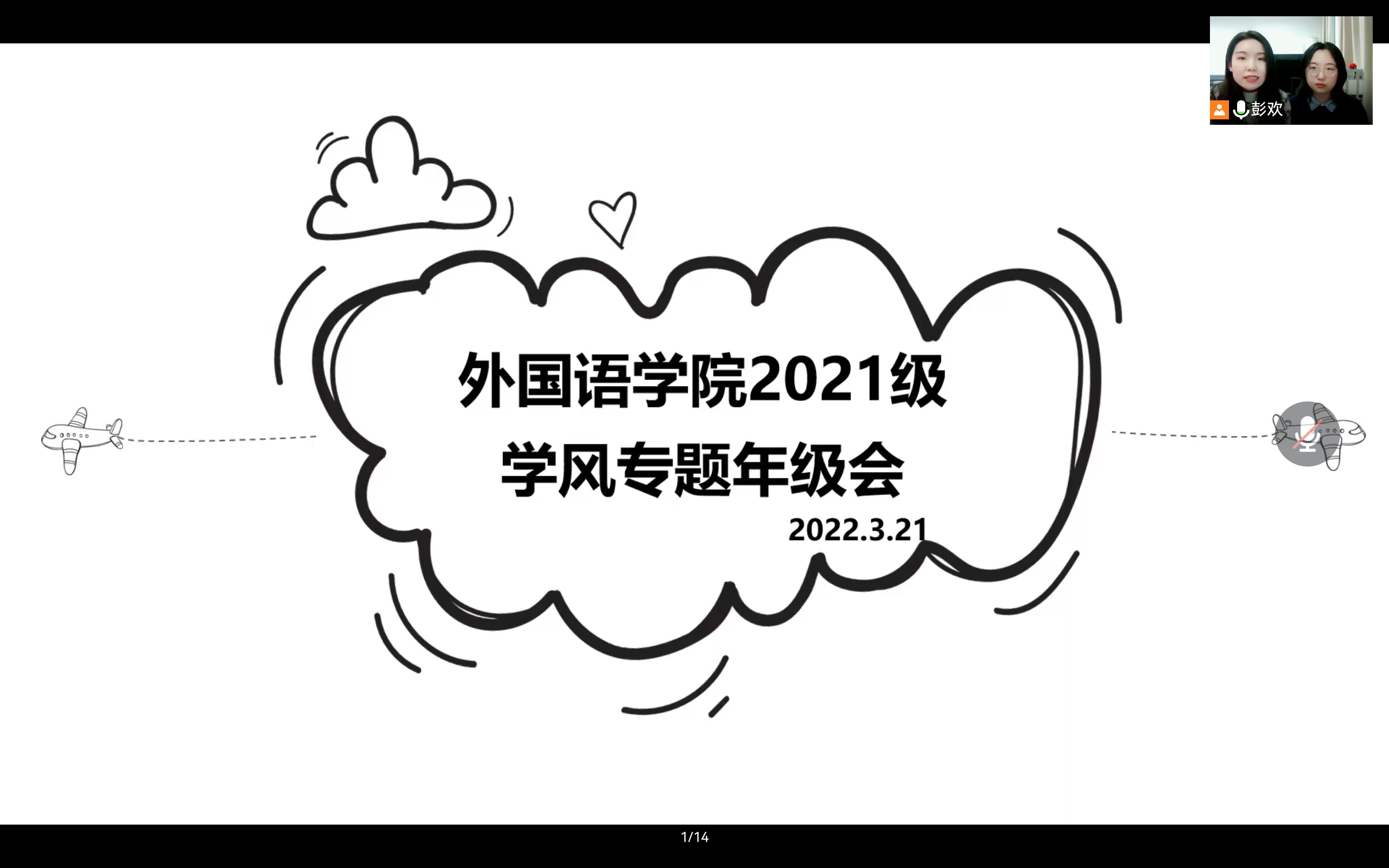 为调动同学们的学习积极性,营造更好的学习氛围,回顾总结上学期的学业成绩,3月21日下午,taptap点点官方网站2021级全体本科生于线上开展学风专题年级会暨“学业攀登计划”启动仪式,会议由辅导员彭欢和兼职辅导员曹文清共同主持。
