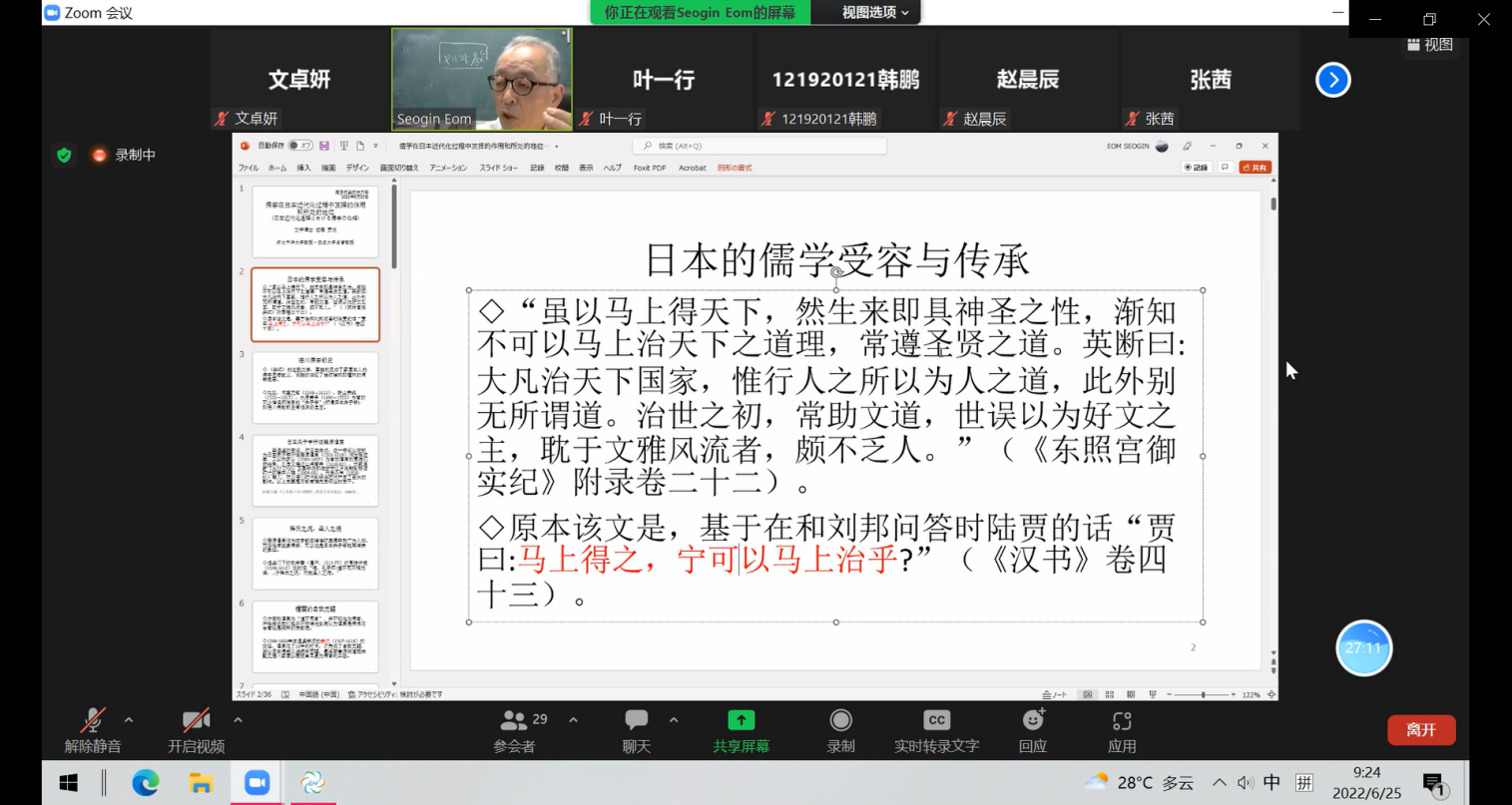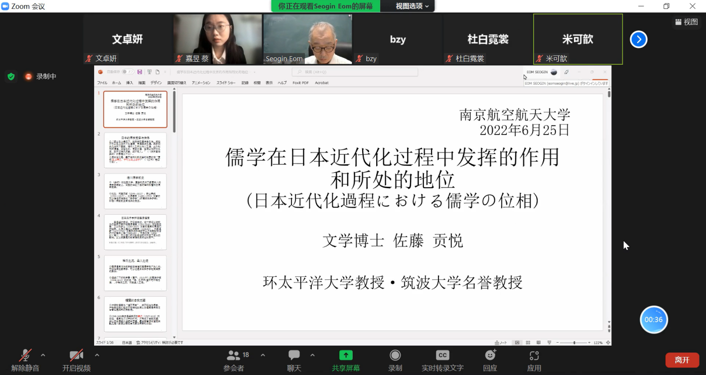 6月28日(周六)上午9:00,taptap点点官方网站日语系海外名师讲坛第二讲通过线上ZOOM会议成功进行,主题为《儒学在日本近代化过程中的作用》。主讲嘉宾为环太平洋大学教授・筑波大学名誉教授佐藤贡悦。