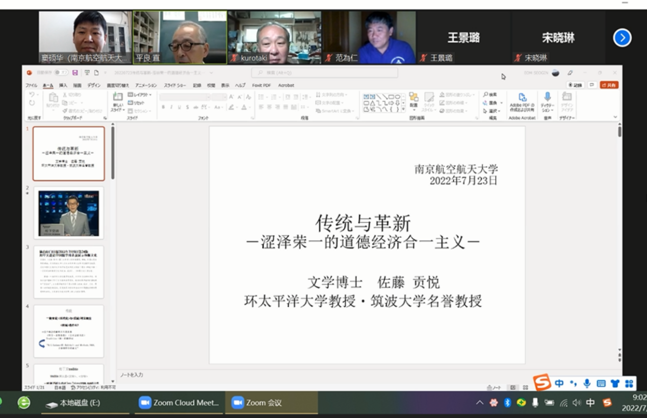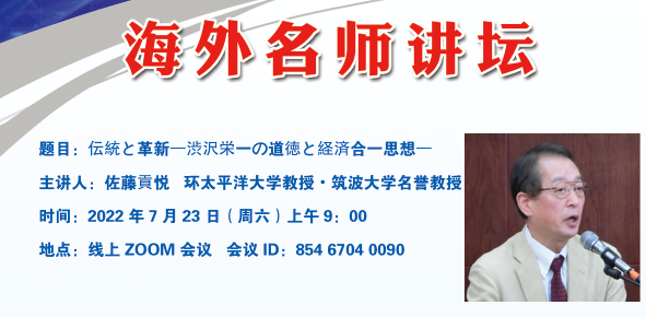 7月23日(周六)上午9:00,taptap点点官方网站日语系海外名师讲坛第三讲通过线上ZOOM会议成功进行,主题为《伝統と革新―渋沢栄一の道徳と経済合一思想―》。主讲嘉宾为环太平洋大学教授・筑波大学名誉教授佐藤贡悦先生。