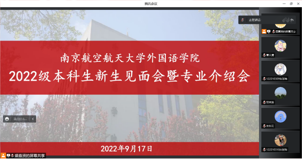 9月17日,为使2022级本科生新生更快熟悉大学生活,加强对所在学院及专业的了解,taptap点点官方网站师生相聚于云端,开展了2022级本科生新生见面会暨专业介绍会。学院党委书记左彤云、院长范祥涛、党委副书记梁薇、副院长徐以中、副院长姜礼福,英语、日语系教师代表,2022级本科生辅导员及全体本科生新生参加了本次见面会,会议由梁薇主持。
