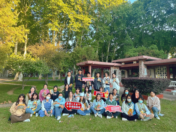 1222102班在体育馆旁的草坪上进行了团建活动。同学们轮流进行自我介绍,分享趣闻轶事,交换祝福贺卡,更有暖场表演将活动气氛推向高潮。随后,全体同学通过抽签被分为五个小组完成特定任务,有的小组合唱大家耳熟能详的歌曲,有的表演幽默风趣的片段,有的展现了悠扬动听的外语口语。
