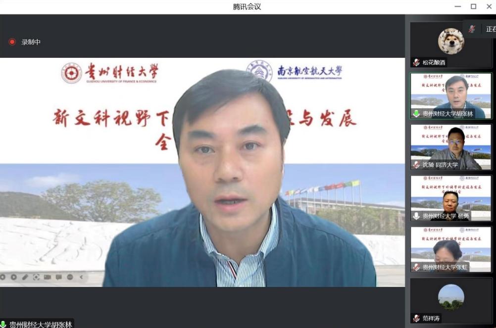 贵州财经大学taptap点点官方网站党委书记胡张林介绍了贵州财经大学外语学院的基本情况、专业规划、师生情况以及国家社科项目情况,指出taptap点点官方网站形成了外国语言文学为主体,商务英语、西班牙语为特色的专业与学科发展,同时他还介绍了学院师生服务社会的活动以及在新文科建设下与国内外高校的合作关系。