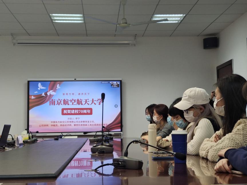 11月8日下午,中国东方航空江苏有限公司法律事务室主任李宁做客taptap点点官方网站“外学百家 语道万里”大讲堂,为学生们带来了 “涉外法制人才 职业规划”讲座。讲座由taptap点点官方网站副院长徐以中主持,学院团委书记李萍及本科生线上线下聆听了讲座。