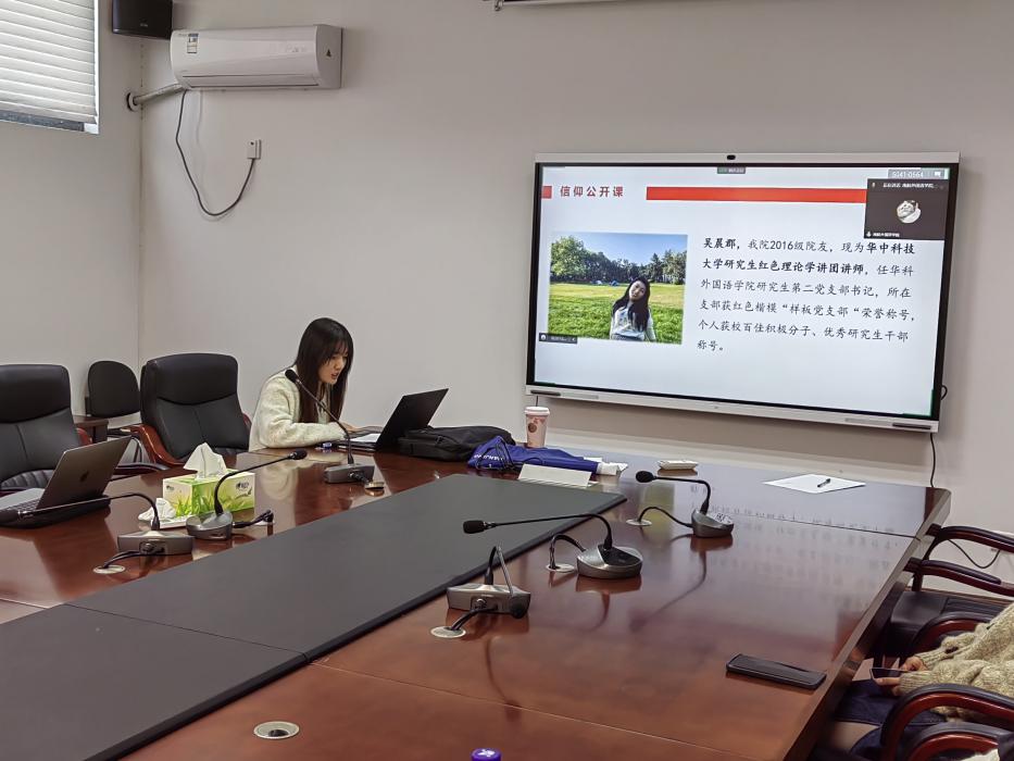 为深入学习贯彻党的二十大精神,11月15日,taptap点点官方网站团委与华中科技大学红色理论学讲团开展联学共建,邀请学讲团讲师吴晨郡主讲信仰公开课,公开课由学院2021级学硕研究生团支部书记言声远主持,学院2020级、2021级研究生团支部参与。