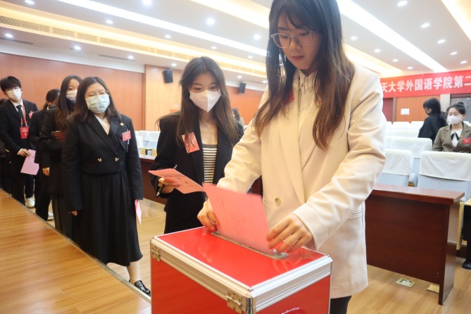 此次大会的顺利召开是我院贯彻落实党的二十大精神的重要举措,在这场青春盛会后,新一届学代会和研代会成员一定会以更加饱满的热情投入到火热的服务实践中去,团结带领广大同学同心同德,携手奋进,为学校建设发展和社会主义现代化强国建设贡献外院学子的青春力量!