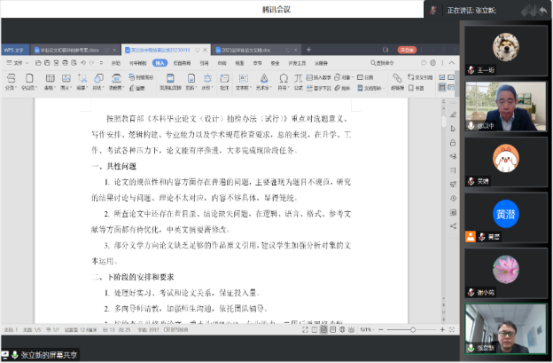 4月13日下午,taptap点点官方网站组织在线召开了2023年本科毕业论文中期检查反馈会暨论文工作推进会。学院领导、中期检查工作组的督导、系领导、教学办管理人员,指导老师和全体毕业生共100多名师生参加了会议,副院长徐以中教授主持会议。