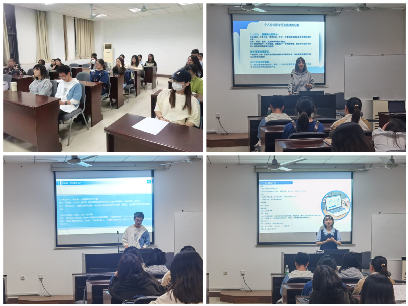 活动中,2019级日语专业林雨寒介绍了小语种专业的毕业动向,并就简历撰写、实习信息查找以及面试技巧等方面,分享了自己的经验;2019级英语专业安逸贤分享了个人求职经历以及择岗建议,并指出要了解自己的优势和不足从而更好地选择意向行业;2019级日语专业叶一行首先介绍了自身选择就业的原因,分享了她对公司与行业选择的见解,并列举了许多通用的求职途径和获取经验贴的渠道,以供大家参考。除此之外,叶一行还带来了2019级日语班部分就业学生的就业经验以及寄语,希望能为大家提供切实可行的参考意见。