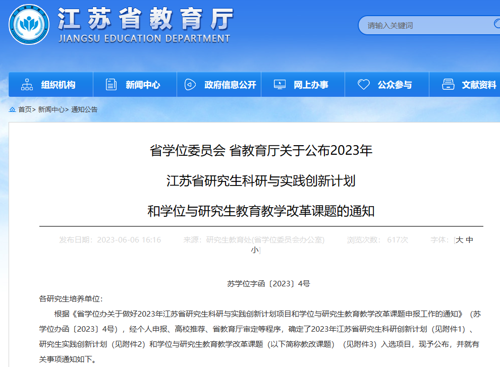 近日,江苏省学位委员会和省教育厅公布2023年江苏省研究生科研与实践创新计划和学位与研究生教育教学改革课题,taptap点点官方网站硕士研究生在研究生科研创新计划项目申报中取得佳绩,成功获批3项。3个课题涉及文学、语言学和翻译方向,分别为秦梓林的“欧陆英语气候小说中的中国形象研究”(KYCX23_0400)、刘亚娟的“一语和二语阅读中回指的神经认知对比研究”(KYCX23_0401 )和何可可的“《史记》古代官职术语英译对比研究”(KYCX23_0402),这也是taptap点点官方网站硕士研究生首次获批省研究生科研创新计划项目。