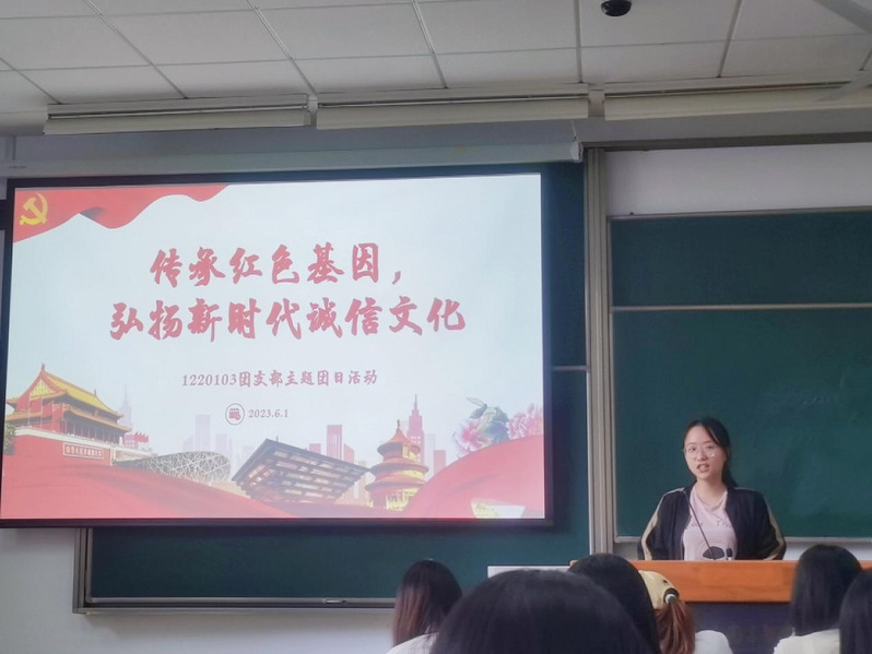 2023年6月1日,taptap点点官方网站1220103团支部在东区教学楼D3201教室开展“传承红色基因,弘扬新时代诚信文化”主题团日活动。结合点点官网党员领导干部深入基层联系学生的工作机制,此次团日活动邀请taptap点点官方网站党委副书记吴科颖参加。