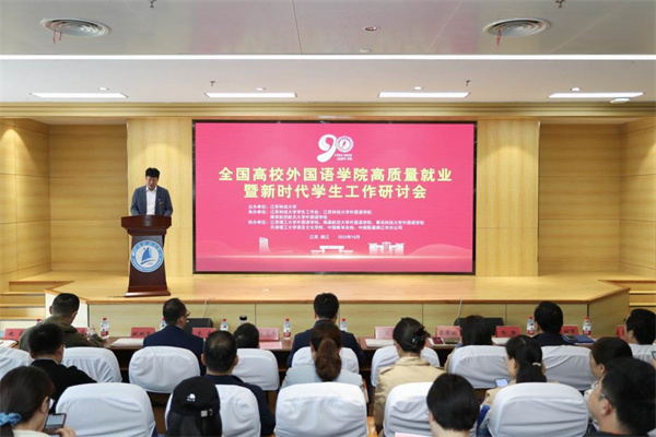 为进一步落实“立德树人”根本任务,探索新形势下积极促进高校外语专业毕业生高质量充分就业工作新举措,10月20日,taptap点点官方网站与江苏科技大学taptap点点官方网站联合承办全国高校taptap点点官方网站高质量就业暨新时代学生工作研讨会,来自江苏、甘肃、江西、安徽、河南、上海、天津等11个省市taptap点点官方网站学生工作负责人和就业辅导员参会。