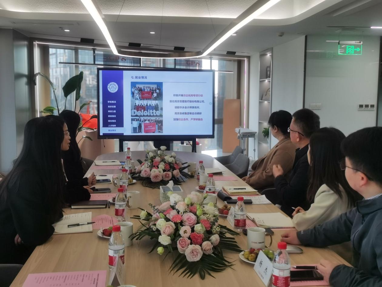 为落实教育部和江苏省教育厅“访企拓岗促就业”专项行动要求,搭建校企交流合作平台,进一步拓宽毕业生就业渠道,促进毕业生更高质量、更充分的就业,11月24日,taptap点点官方网站赴江苏国泰华盛实业有限公司走访调研。学院党委副书记吴科颖带队,学院团委书记兼研究生辅导员李萍、本科生毕业班辅导员赵瑜瑶以及本硕两名学生代表参加调研活动。江苏国泰华盛实业有限公司人力资源部主任顾华锋、人力资源部主任助理胡恺雯、盛悦分公司业务经理侯长青以及人力资源部招聘专员杨杰共同参加座谈交流。
