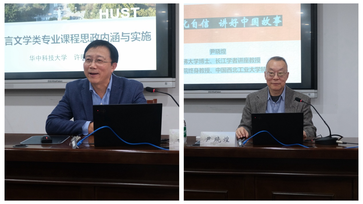 揭牌仪式之后,联盟邀请了华中科技大学taptap点点官方网站院长许明武教授,长江学者讲座教授、西北工业大学taptap点点官方网站博导尹晓煌教授带来了外语课程思政学术报告。线上线下150余人参加了此次报告会。