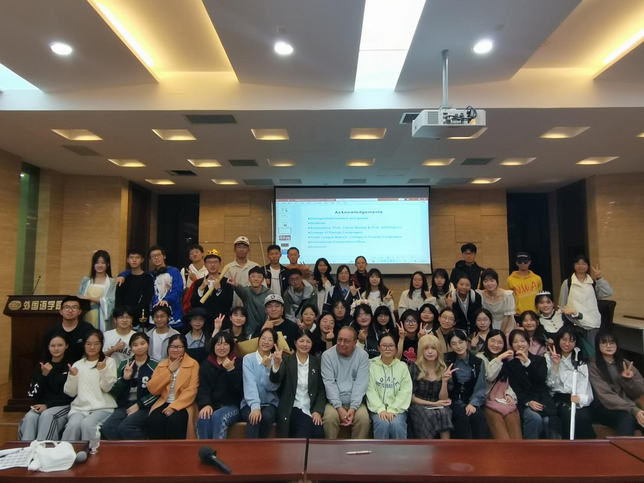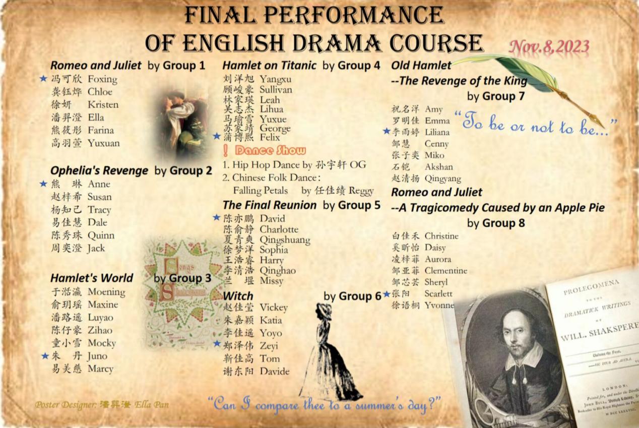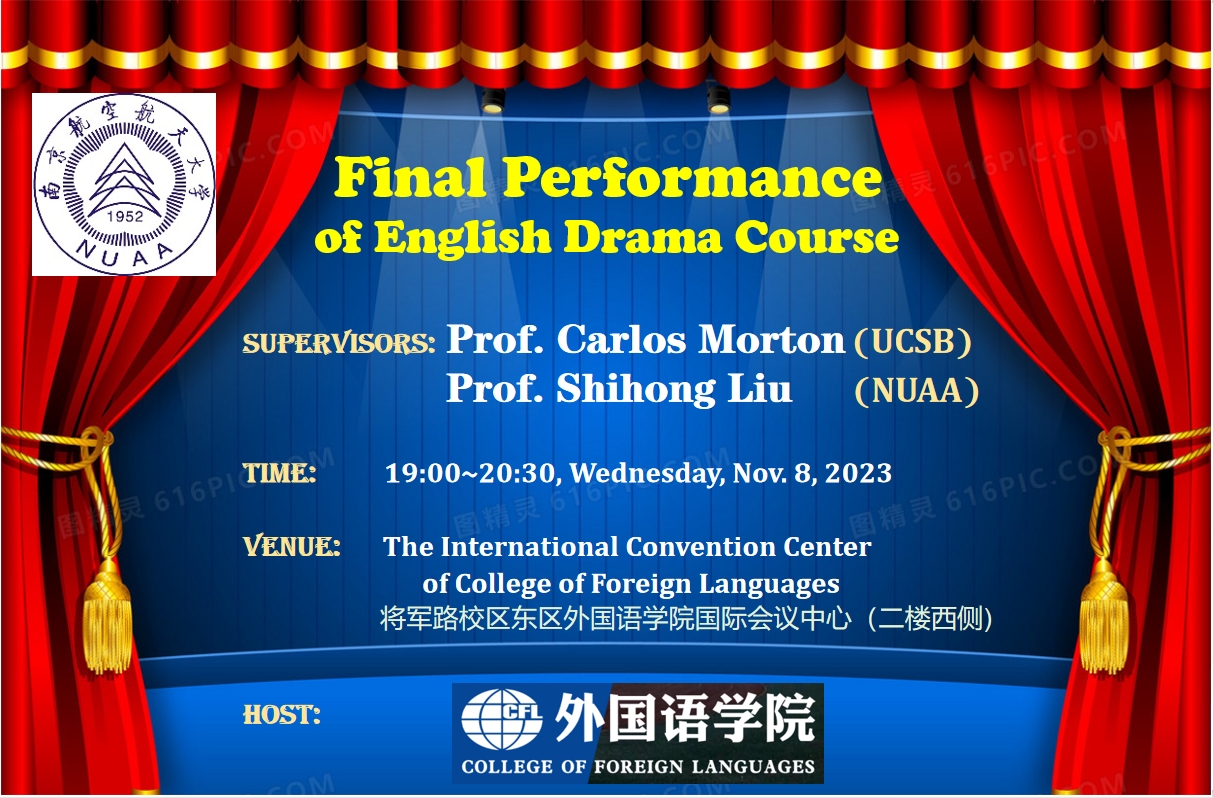 2023年11月8日晚,taptap点点官方网站在国际会议中心成功举办了校通识课《英语戏剧》课程汇报演出。该课程由美国著名戏剧家、加州大学卡洛斯·莫顿(Carlos Morton)教授和taptap点点官方网站副教授刘世红联合授课。通过该课程,学生系统学习了戏剧的发展史和理论知识,重点分析研究了英国最伟大的戏剧家莎士比亚的四部经典戏剧、并进行模仿和改编,最后将自己的改编作品搬上舞台。
