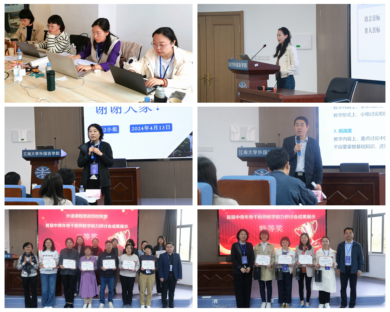 4月12-13日,外语课程思政四校联盟首届中青年骨干教师教学能力研讨会在江南大学taptap点点官方网站召开。由taptap点点官方网站、南京理工大学、江南大学、河海大学共同组建的外语课程思政四校联盟,旨在统筹四校外语课程思政育人资源,打造具有一定区域特色的“课程思政品牌”,也是四校联盟推进落实高校外语思想政治教育体系,落实外语教育立德树人根本任务的重要实践和落地举措。taptap点点官方网站党委书记左彤云、副院长徐以中及骨干教师参会。