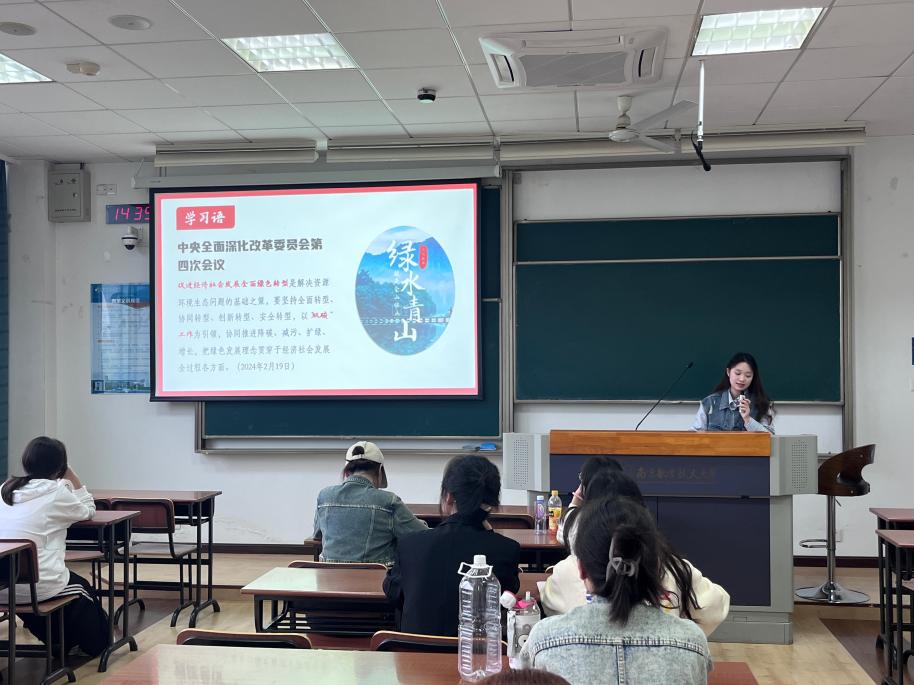 本次党日活动分为三个环节,分别是理论学习、知识问答以及旧物改造。在环节理论学习环节,主讲人叶羽桐介绍了习近平总书记关于生态文明建设重要论述综述,教育引导青年学生尊重自然、顺应自然、保护自然,践行绿色、低碳、可持续发展理念,同学们对“共谋绿色发展,建设美丽中国”这一时代课题有了更深刻的认识和理解。