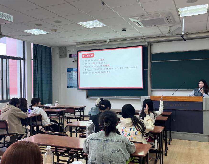 在接下来的知识问答环节中,同学们积极举手进行抢答,现场气氛紧张有趣。通过这一环节,深刻的让同学们认识到一代人有一代人的使命,建设生态文明的时代责任已经落在了青年的肩上,在习近平生态文明思想指引下,应该为全面建设社会主义现代化国家、开创美丽中国建设新局面贡献青年力量。