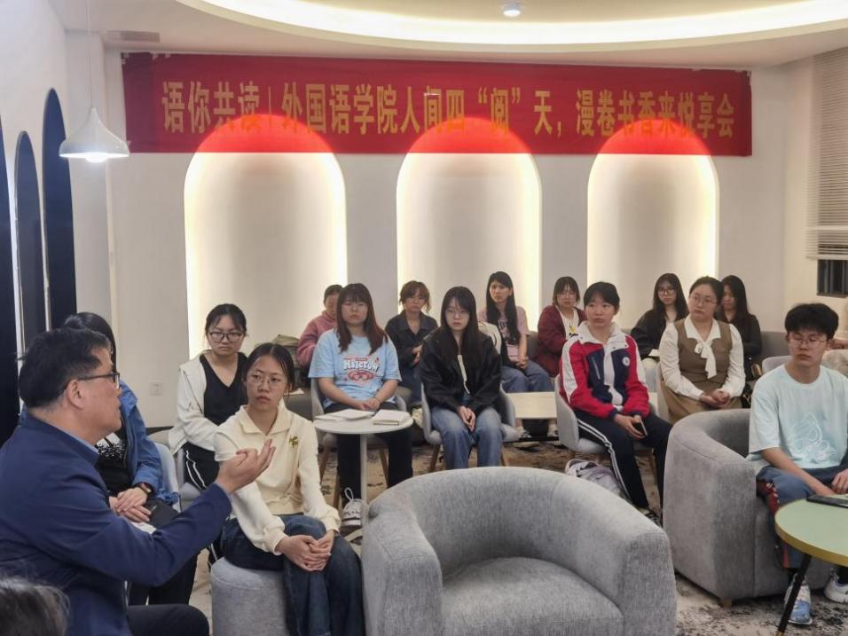 接着,范祥涛院长向同学们寄予了深厚的读书期望。他向同学们分享了自己读书的心路历程,强调了阅读对于个人成长和社会进步的重要性。鼓励大家作为外语专业的学生,要充分利用自己的专业优势,扩大自己的阅读量和知识面,将泛读与精读结合,让阅读不仅仅成为获取知识的工具,更成为必不可少的生活方式。范院长表示,学院将一如既往地支持阅读推广活动,为同学们提供更多优质的阅读资源和条件。