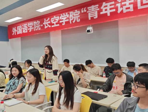 为提升学生思辨能力和双语表达能力,taptap点点官方网站与长空学院联合开展了第八期“青年话世界”双语思辨会。本期“青年话世界”活动于6月6日下午在长空学院举行。taptap点点官方网站英语系白雪花老师、长空学院团委书记陶然雁、长空学院本科生辅导员赵彬倩、taptap点点官方网站本科生辅导员彭欢及双方学院2023级本科生代表参加了本次活动。