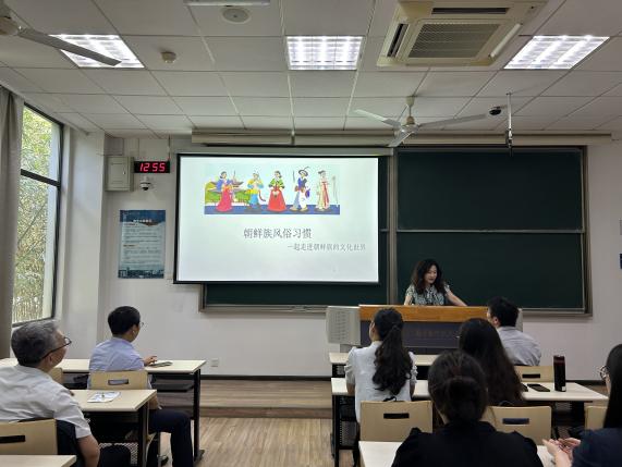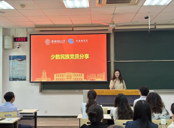 接下来是少数民族党员的文化分享环节。来自朝鲜族的白雪花老师和来自回族的石宇琳同学分别分享了各自的民族文化。白雪花详细介绍了朝鲜族的风俗习惯、饮食文化和传统节日,石宇琳则分享了回族的生活习惯和文化传承。这些分享不仅增进了支部成员对少数民族文化的了解,也增强了大家的民族团结意识。