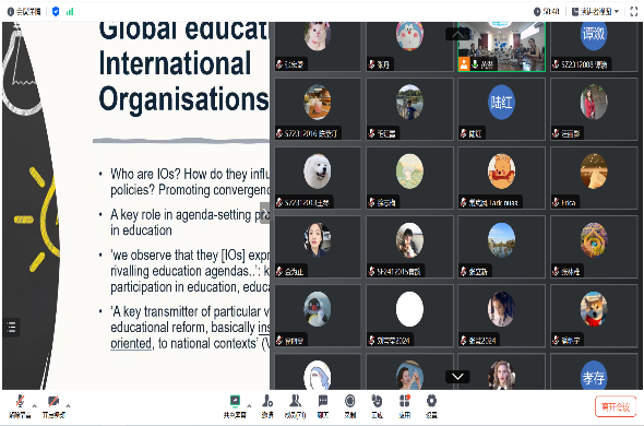 报告会上,袁教授由“什么是全球化”“是谁的全球化”等问题引入,结合自身在英国高校从事国际教育的经验,分享了关于全球化的三个视角、全球化对教育的影响以及对全球化视野下教育研究的深入思考。袁教授强调,把教育置于全球化和国际化的视野下是为了更好地看待教育的本质、探索教育作为全球公共利益的属性、揭示教育在不同社会的公平性,从而促进教育积极贡献的可持续发展,因此需要研究者具备历史和发展的眼光、语言文化的敏感性以及对教育、社会、个体、群体和国家之间关系的深刻洞察力。
