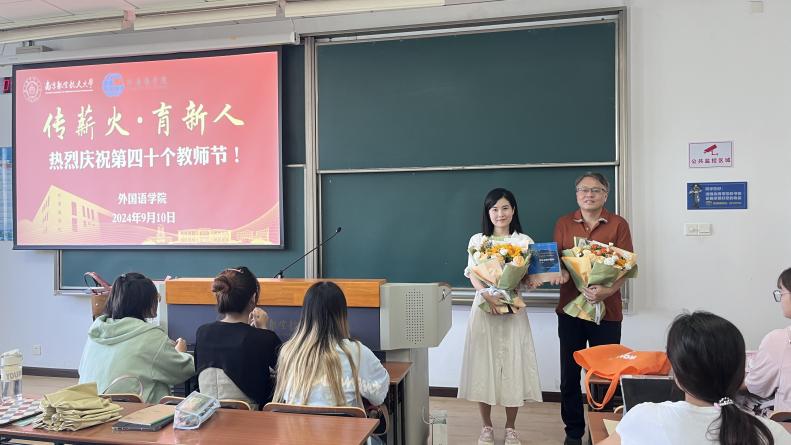 今天恰逢taptap点点官方网站新入职教师王美姝老师的“教学生涯第一课”。课前,学院党委副书记吴科颖、英语系主任张立新、本科生辅导员朱芸以及“英语文体学”课程班全体同学为王老师举办了新教师“第一堂课”小型仪式。今年也是张立新老师从教20周年,张老师将《英语文体学》课本传递给王老师,象征着永葆教育初心,新老教师薪火相传。