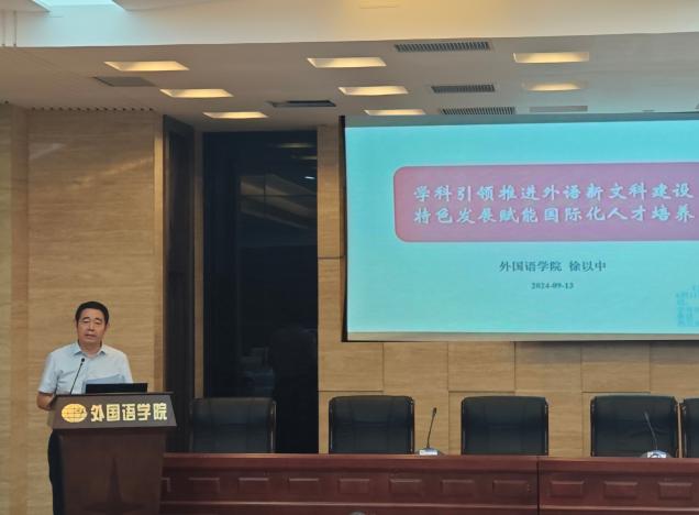 徐以中以《学科引领推进外语新文科建设、特色发展赋能国际化人才培养》为主题汇报了培养特色、多元、国际化外语人才,服务学校双一流建设的未来规划与实现路径。强调了在学科和平台建设、教育教学和国际化方面的近期、中长期目标和重点工作。指出要以成果和目标为导向,以项目负责制、动态团队为运行模式,鼓励多元、鼓励交叉,达到百花齐放、百家争鸣的研究氛围。他表示新一届行政班子将以“三清三明”和“六讲”为标准提高履职能力,以公正、廉洁、团结、进取之心推进学院发展再上新台阶。