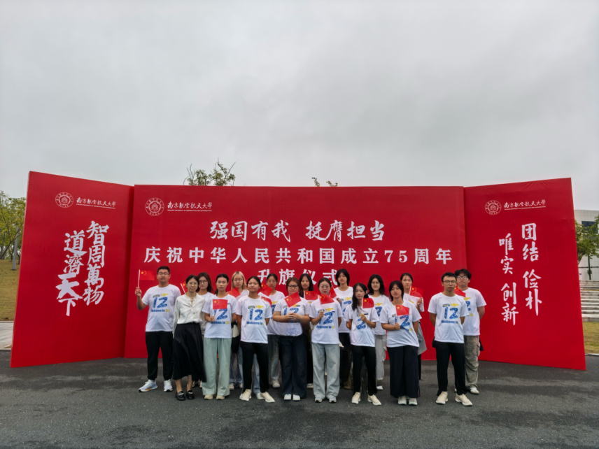 10月1日上午,学院师生代表分别在将军路校区、天目湖校区参加了学校庆祝中华人民共和国成立75周年“强国有我 挺膺担当”升旗仪式。伴随着雄壮的《义勇军进行曲》,五星红旗冉冉升起,全场人员庄严肃立,仰视国旗行注目礼,齐声高唱国歌,深情祝福伟大祖国,同上了一堂国旗下的思政大课。